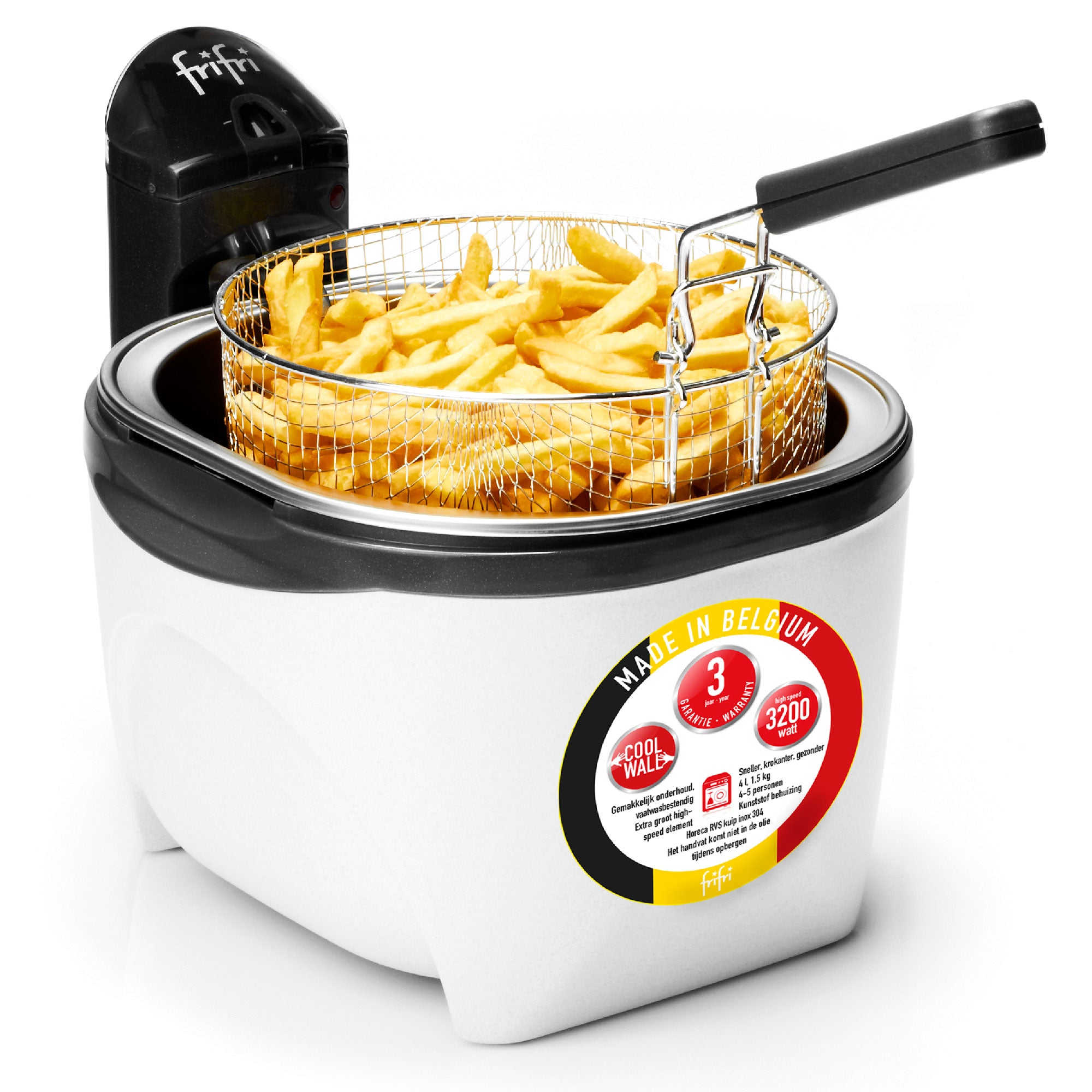 Frifri High Speed Cool Wall friteuse 4 liter Vanaf nu geniet je met het hele gezin van heerlijke, krokante frietjes! Het kan met deze High Speed Cool Wall friteuse van Frifri! De friteuse heeft een extra grote ronde mand en bereidt zo per keer 1,5 kilo frietjes! Dat is goed voor wel 4 à 5 porties. De friteuse is tevens voorzien van een regelbare thermostaat met temperatuuraanduiding en een dubbele beveiliging tegen oververhitting.