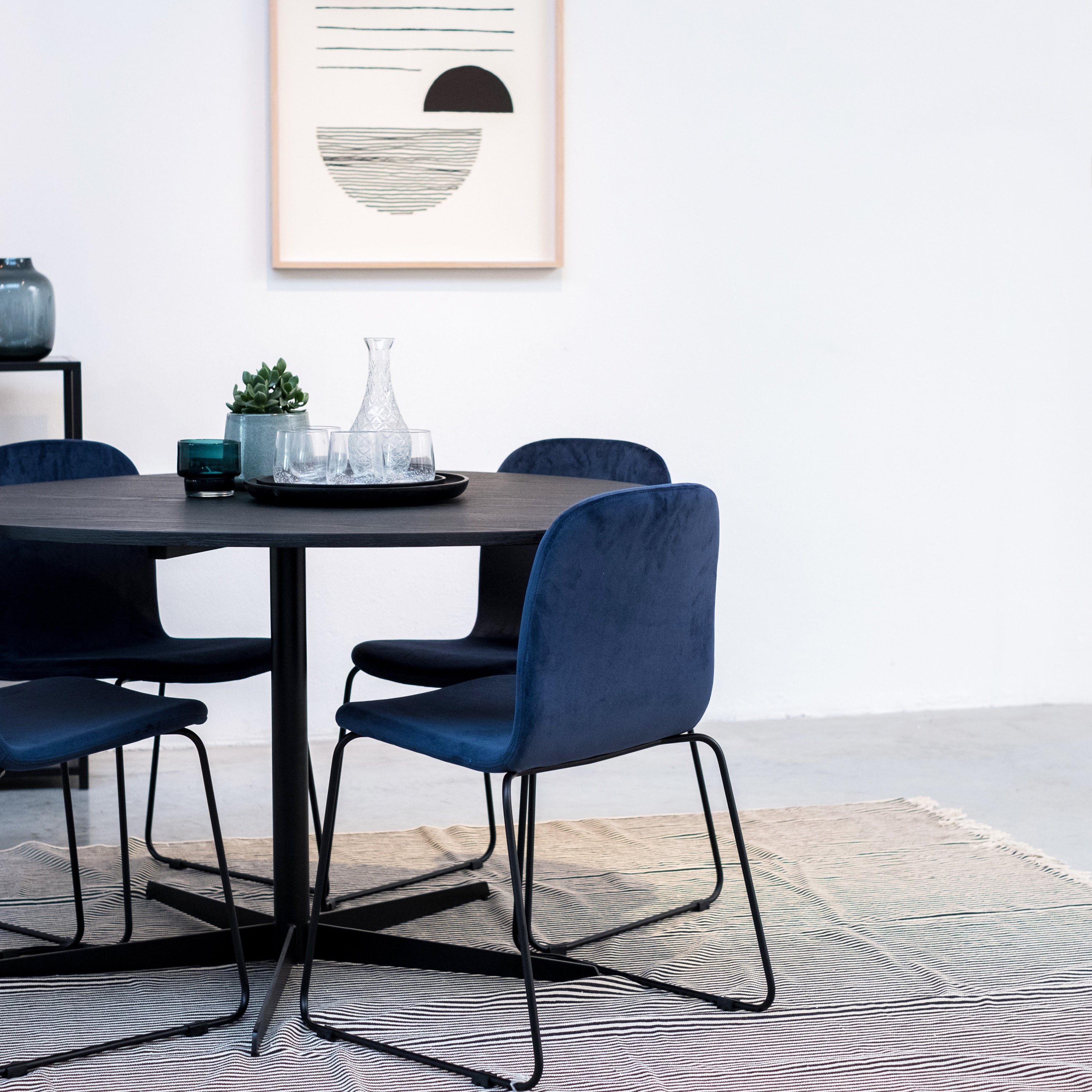 Furnified - Eetkamerstoel - Cedric - Donkerblauw Velvet
