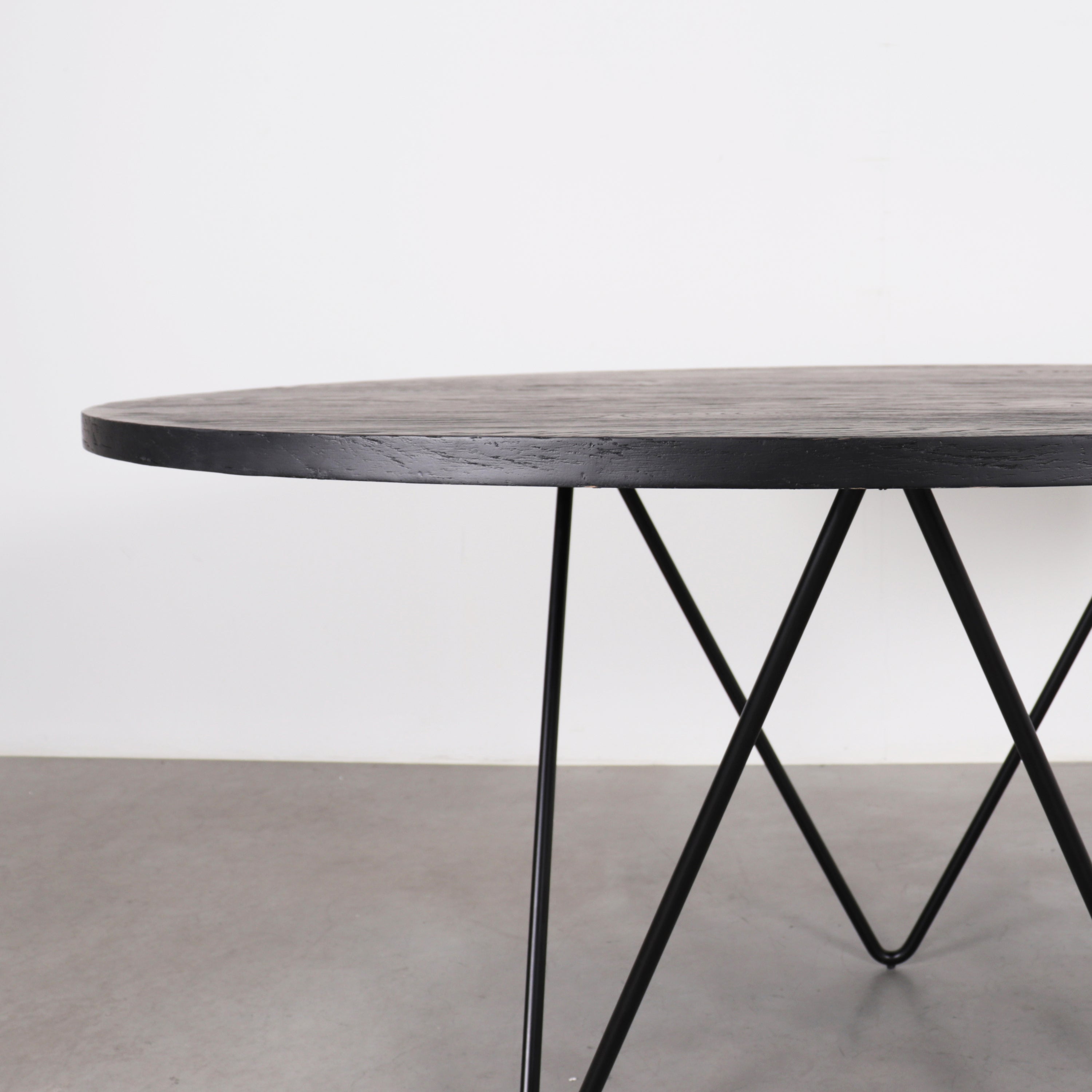 Furnified - Ronde eettafel met Houten Blad - Zwart - Ø150cm