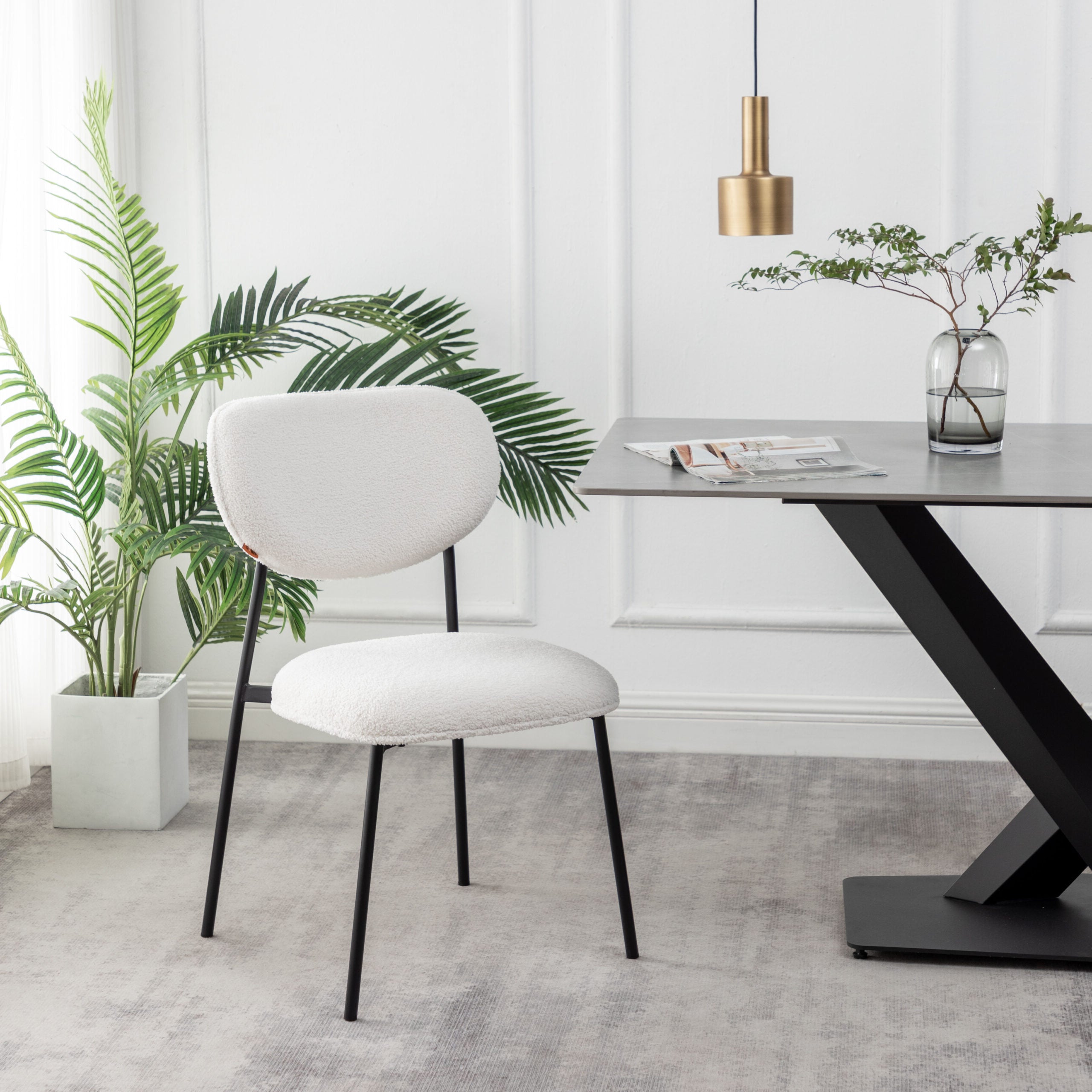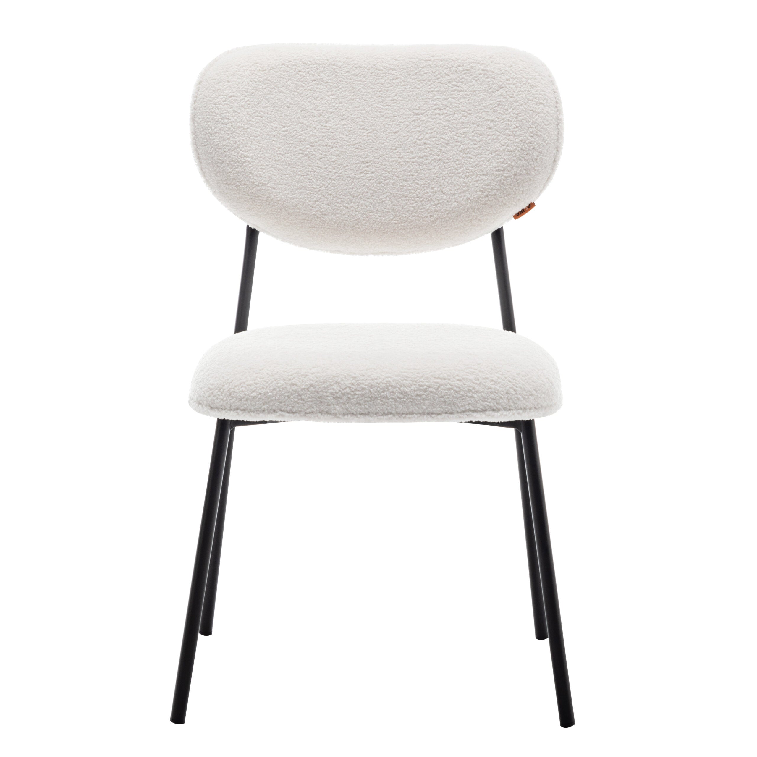 - Luxueuze eetkamerstoel Amalia met zachte teddy stof bekleding en stevige metalen poten