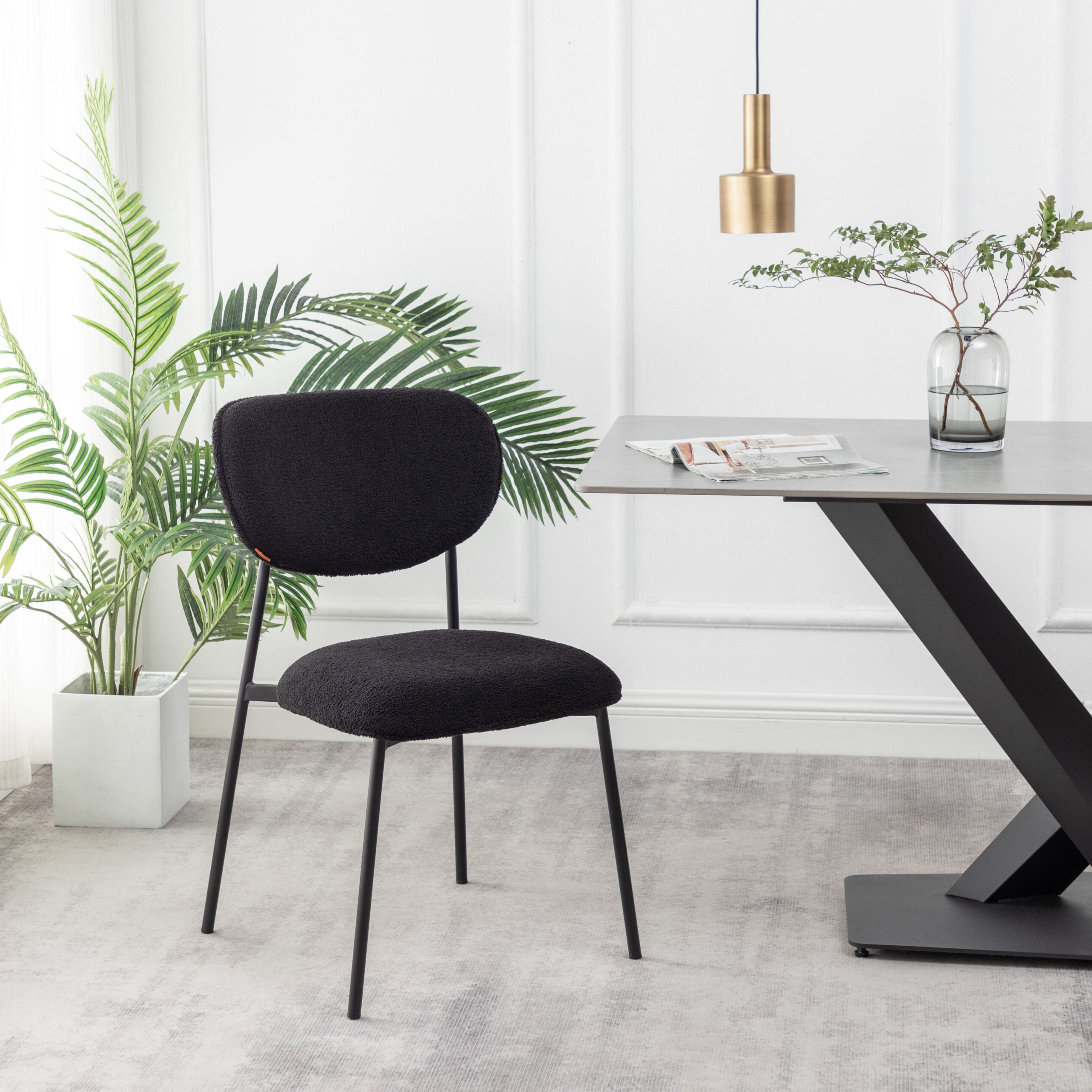 - Luxueuze eetkamerstoel Amalia met zachte teddy stof bekleding en stevige metalen poten