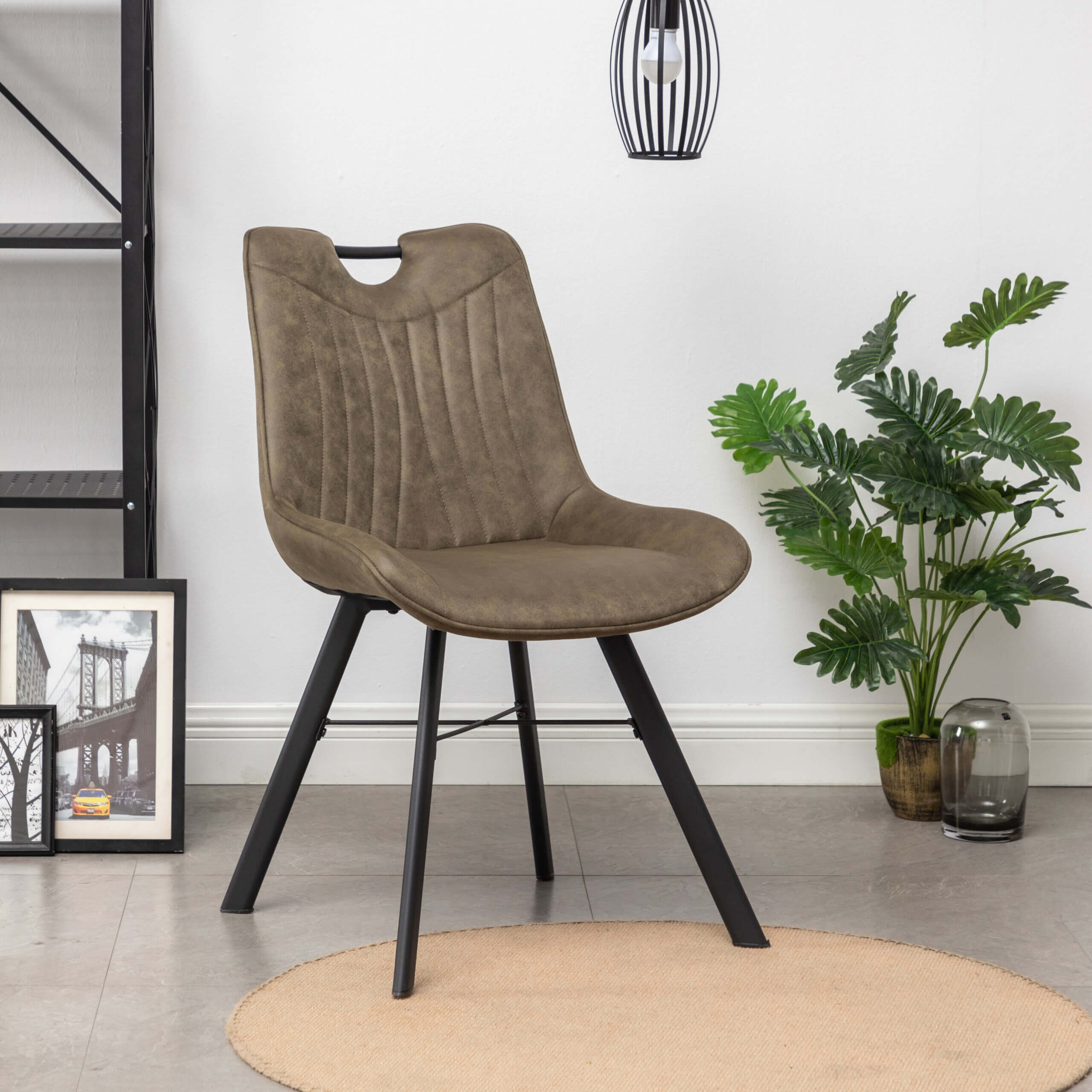 Met eetkamerstoel Matz haalt u een stoere stoel in huis die uw leefkeuken of eetkamer een industriële touch geeft. Het zwarte, metalen frame en het handvat in de rugleuning geven deze eetkamerstoel een robuuste look, terwijl de royale, comfortabele zitting voldoende steun geeft voor een heerlijk avondje tafelen.. Eetkamerstoel Matz heeft microvezel bekleding en is verkrijgbaar in de kleuren antraciet, cognac, groen en taupe. Wilt u een combinatie van kleuren? De eetkamerstoel Matz is er ook in een mix&match set. Deze set bestaat uit 4 stoelen met de kleuren antraciet, cognac, groen en taupe.