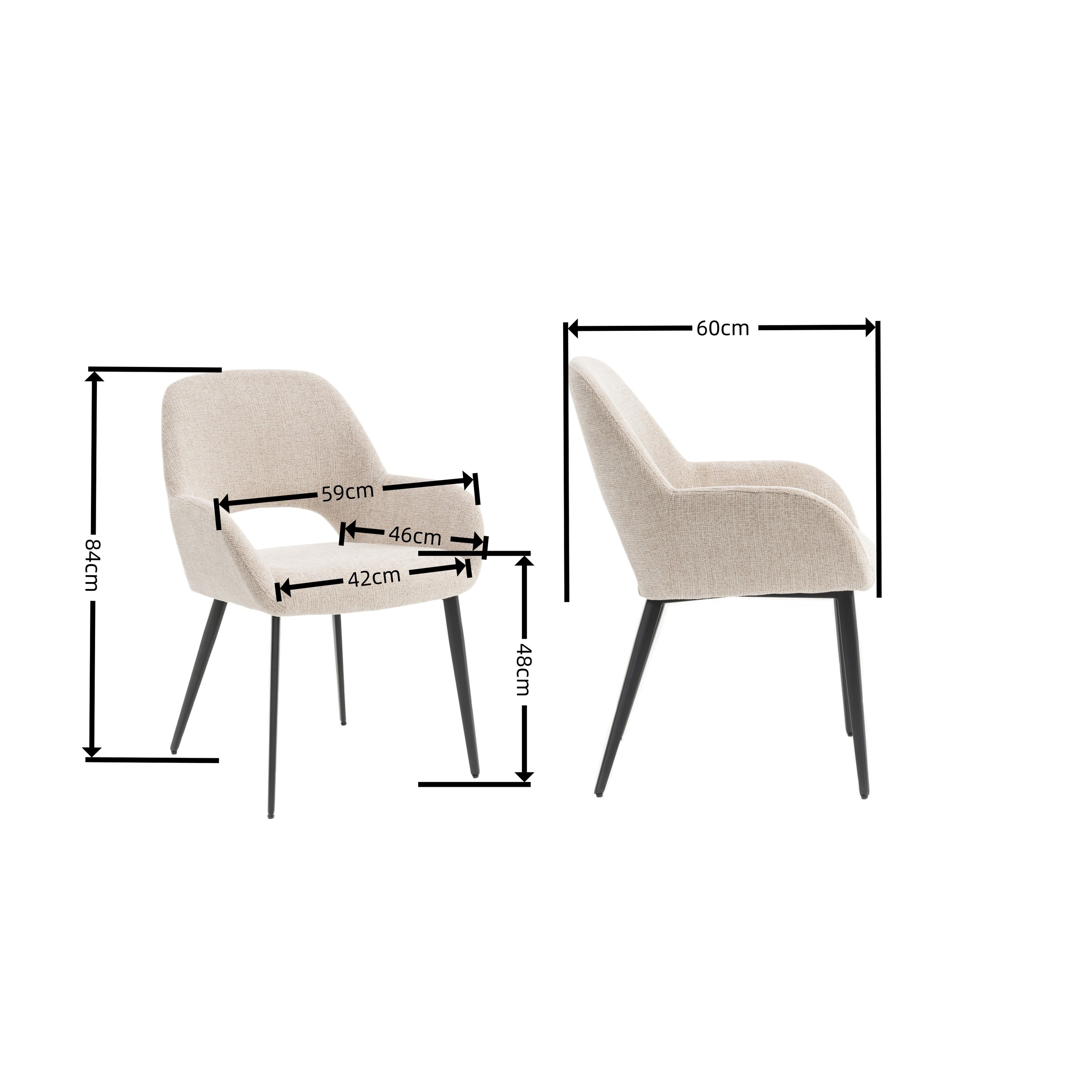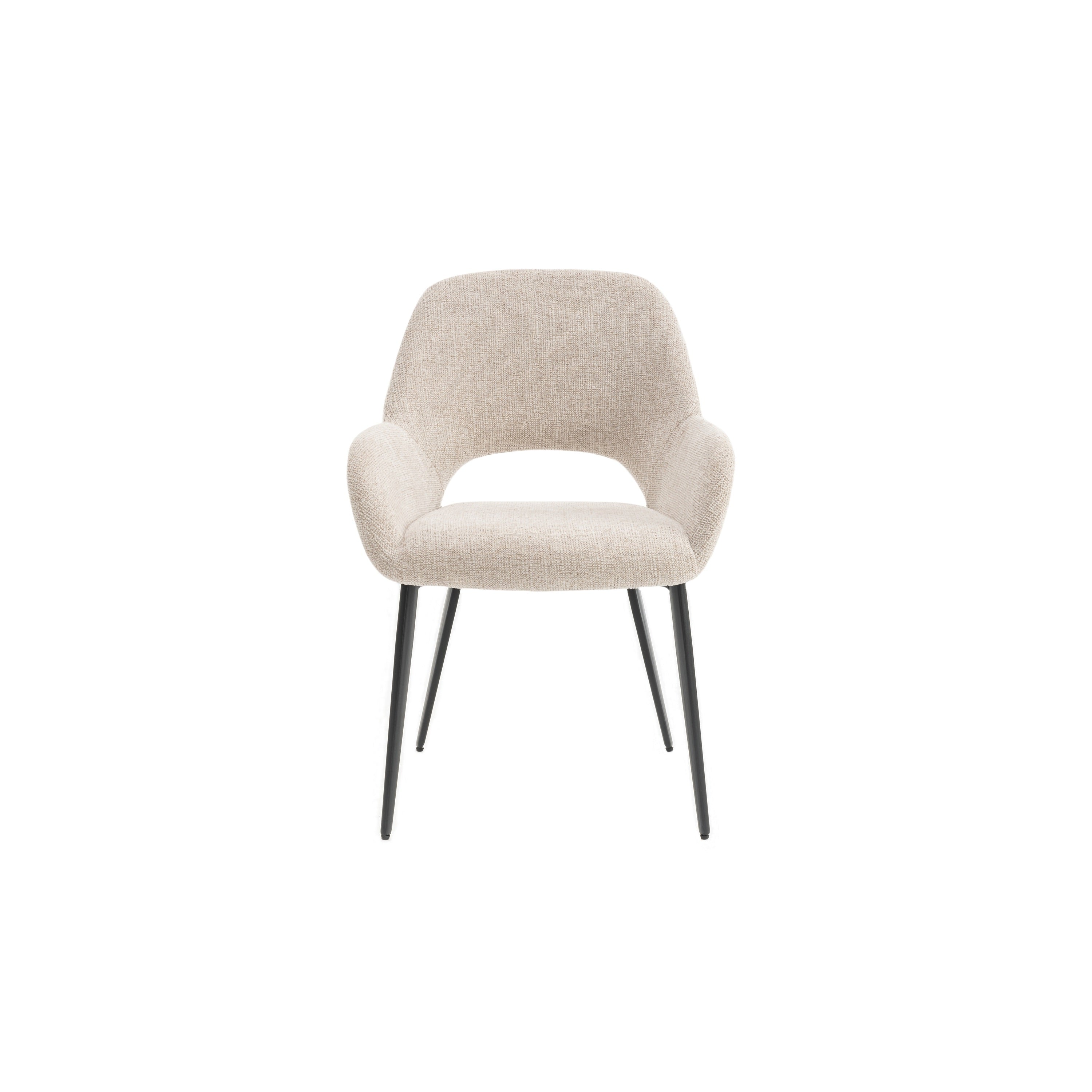 De armleuningen van de Levi eetkamerstoel bieden optimale ondersteuning, waardoor je urenlang comfortabel kunt zitten tijdens diners, bijeenkomsten of gewoon bij het genieten van een kopje koffie aan je eettafel. Het ergonomische ontwerp zorgt ervoor dat je rug en armen altijd goed worden ondersteund.