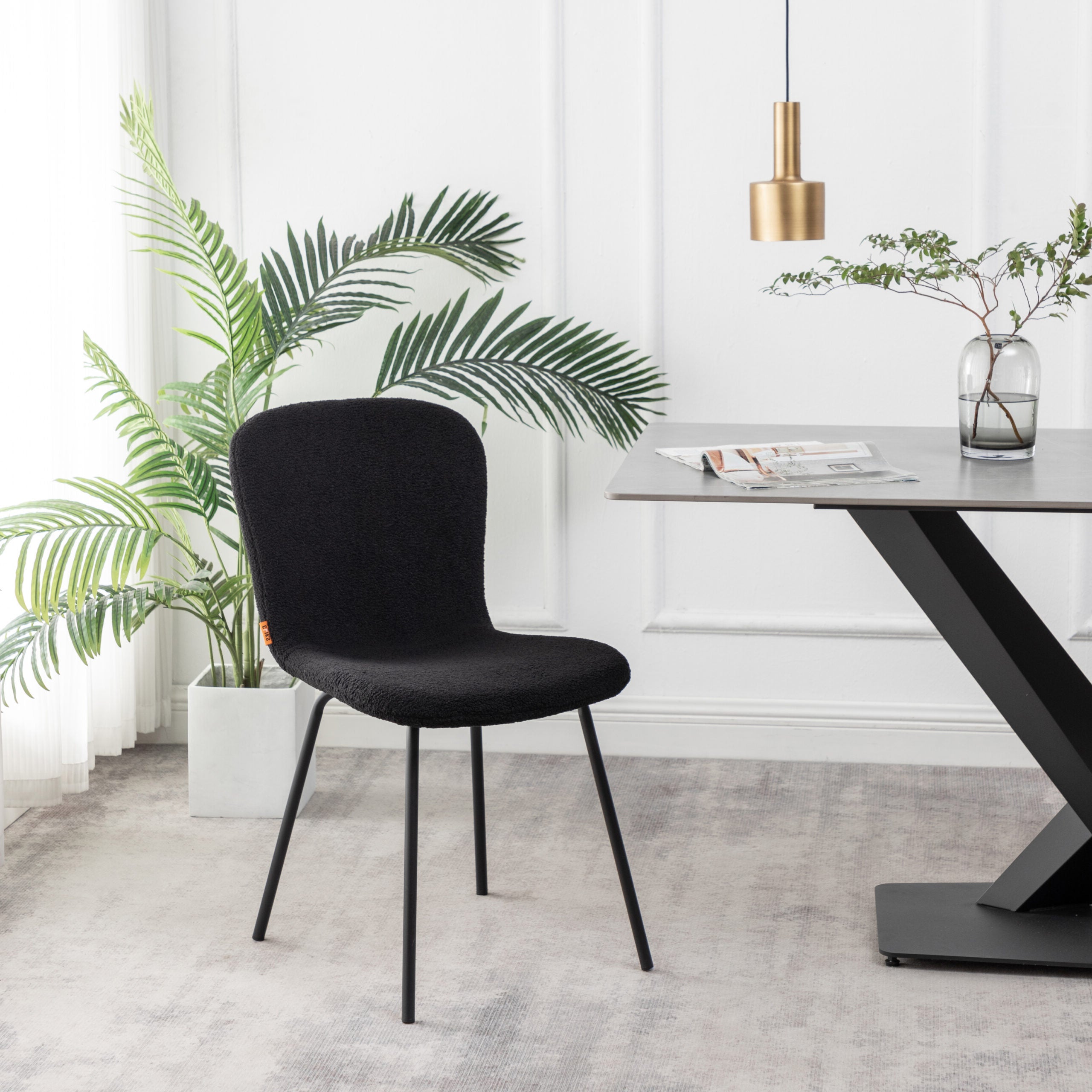 - Luxueuze eetkamerstoel Luca met zachte teddy stof bekleding en stevige metalen poten