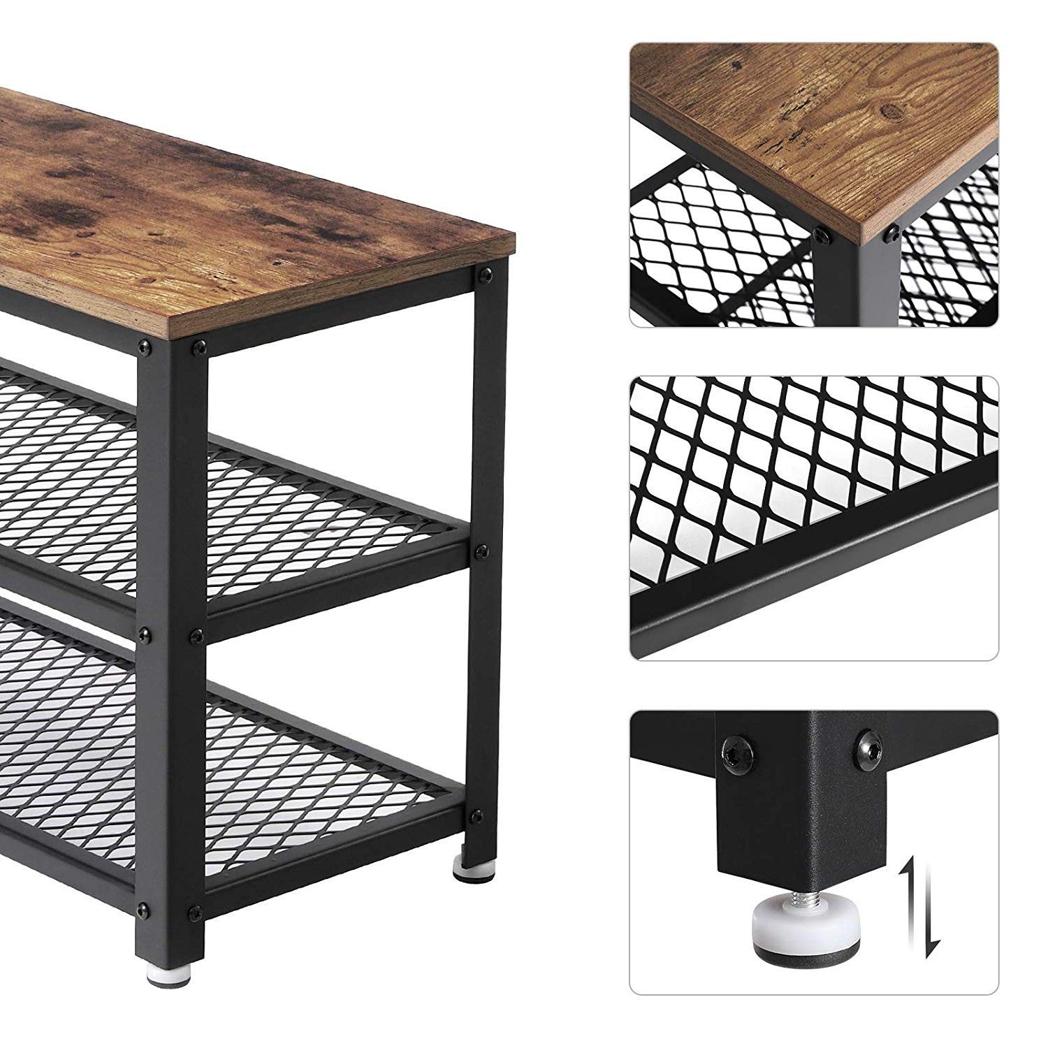 Altijd tijd verspillen op zoek naar de juiste schoenen in een grote rommelige stapel? Wil je een nette inzending zoals je die in de tijdschriften ziet? Laat Furnihaus schoenenrek helpen en red je ongeorganiseerde ingang! Compact maar functioneel. Dit compacte schoenenrek met een afmeting van 73 x 30 x 45 cm neemt weinig ruimte in beslag en biedt 3 lagen ruime opbergruimte, geschikt voor kleine ruimtes. Met een eenvoudig en aantrekkelijk ontwerp, is het ook ideaal voor het opbergen van tassen, dozen, boeken, planten, enz. Alles voor uw gemak 4 verstelbare poten zijn ontworpen voor eenvoudige nivellering op oneffen vloeren en beschermen vloeren tegen krassen. Met een laadvermogen van 90 kg heb je een stevige zit om je schoenen aan te trekken. Je hoeft je schoenen dus niet te strikken door op één been meer te springen.