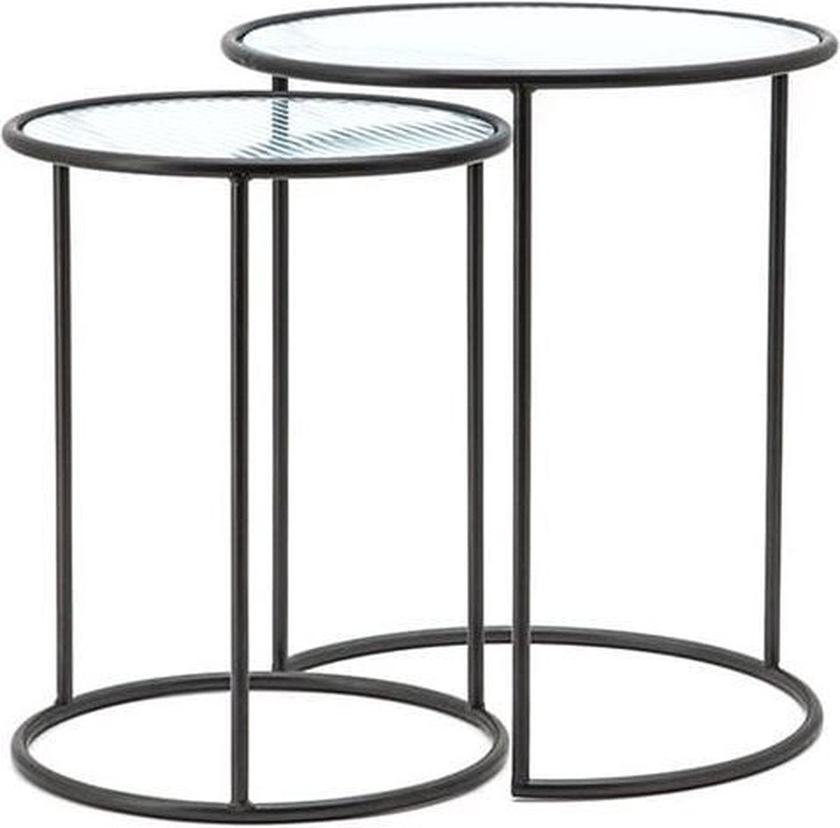De Furnilux Salontafels Rond Nova is een set van 2 industriële salontafels. Het blad van deze salontafel is gemaakt van glas. Het onderstel is gemaakt van ijzer. Door deze combinatie van materialen past deze salontafel goed in ieder industrieel interieur. Door de verschillende hoogtes van de bijzettafels kunnen ze een beetje in elkaar geschoven worden voor een ruimtelijk effect. Wat deze salontafels bijzonder maakt: • Luxe uitstraling • Glazen blad • Veelzijdig te gebruiken • Stijlvol br> Specificaties: • Materiaal: Ijzer en Glas • Kleur: Zwart • Afmeting: Ø 44 x 50 cm hoog • Voorgemonteerd: Ja • Verstelbaar in hoogte: Nee