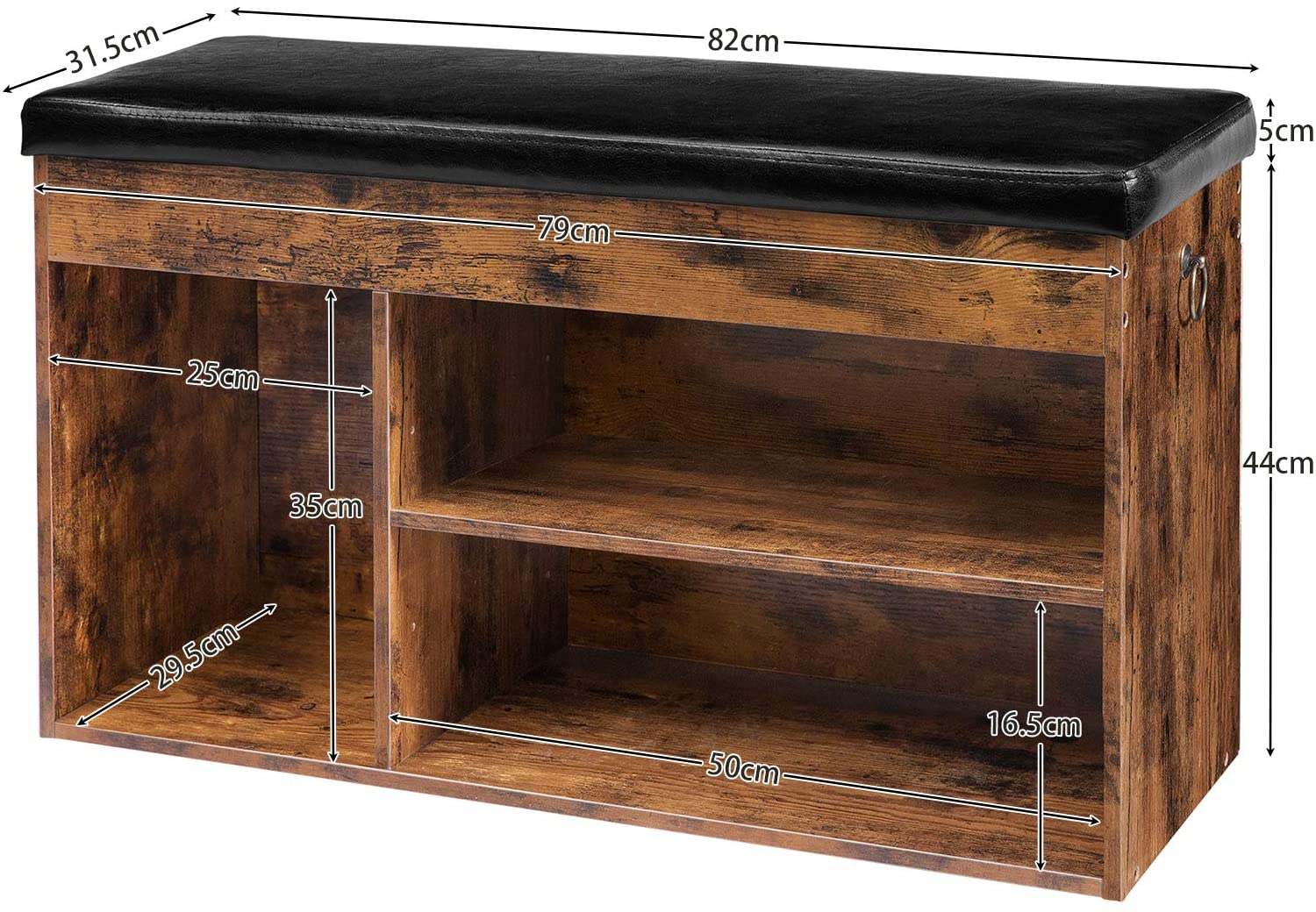 de schoenenbank met de afmetingen 82 x 31,5 x 44 cm neemt weinig ruimte in, maar is perfect geschikt om orde in je volledig gestopte gang te brengen, met handgrepen aan 2 zijden van de schoenenkast voor eenvoudig optillen