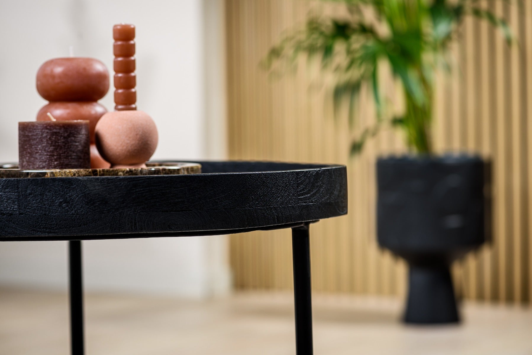 - De volledig zwarte kleur geeft de bijzettafel een industriële look