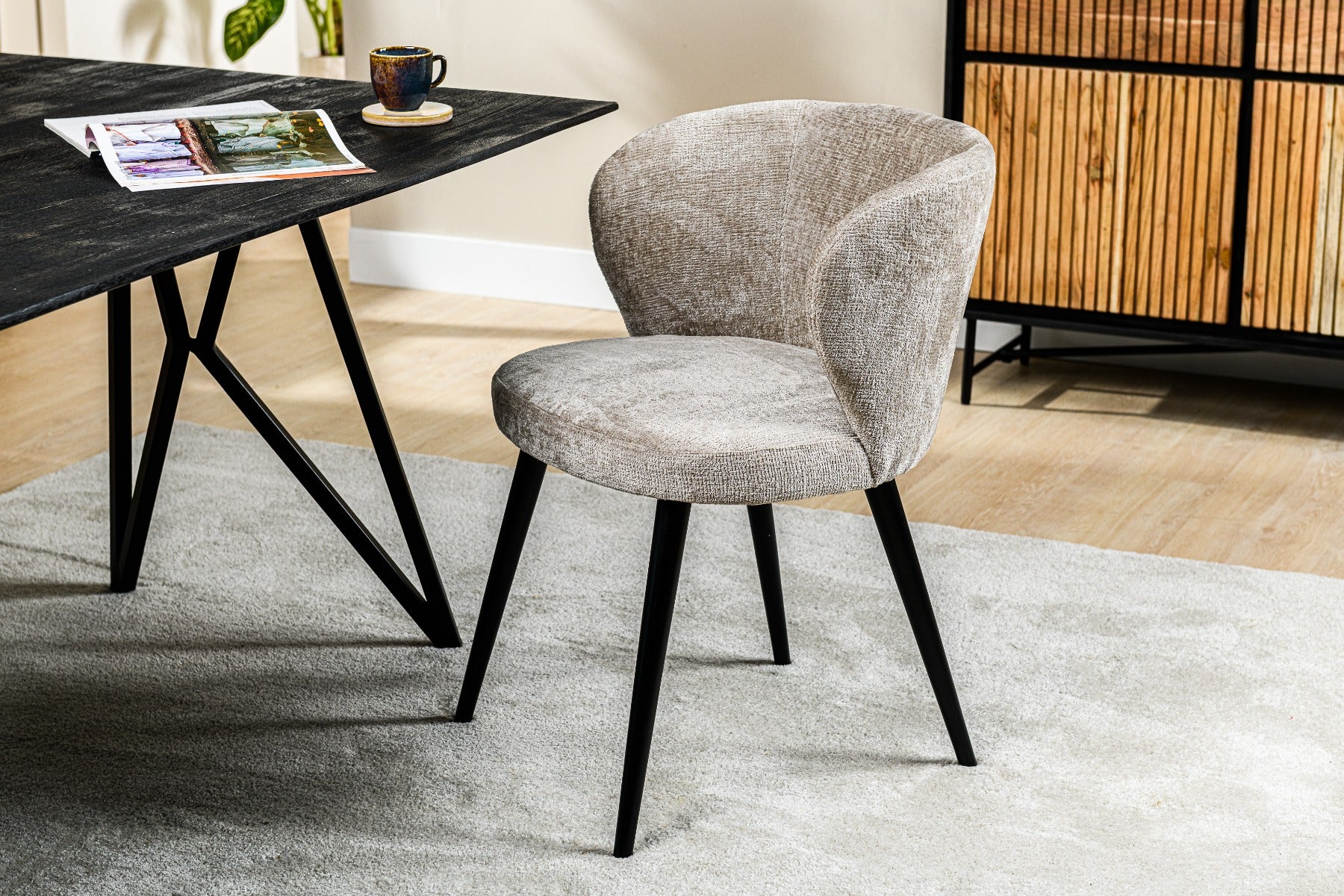 Eetkamerstoel van Furntastik is een comfortabele stoel met een speels trendy onderstel van staal.