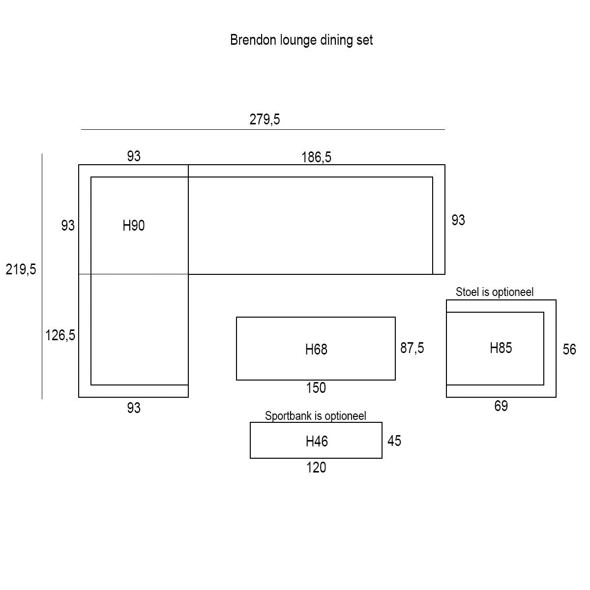Garden Impressions Brendon lounge dining set 4-delig L - mint grijs