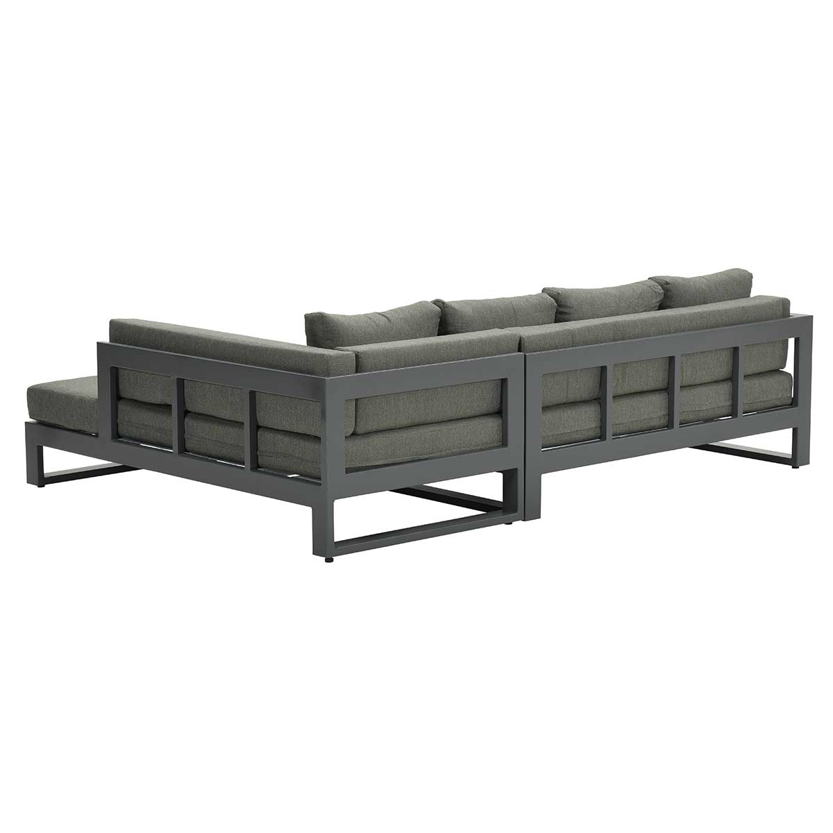 De moderne chaise-longue loungeset Esmee is een pareltje van een loungeset. Deze ruime loungebank heeft een groot chaise-longue deel, waar u heerlijk kunt liggen. Het strakke ontwerp en aluminium frame zorgt voor een moderne look. De comfortabele loungekussens zijn standaard inbegrepen.