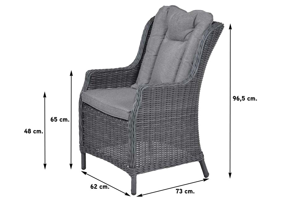 De tuinstoel wordt geleverd inclusief zachte kussens. Het rugkussen is voorzien van extra stiksels waardoor de stoel een extra chique uitstraling krijgt.