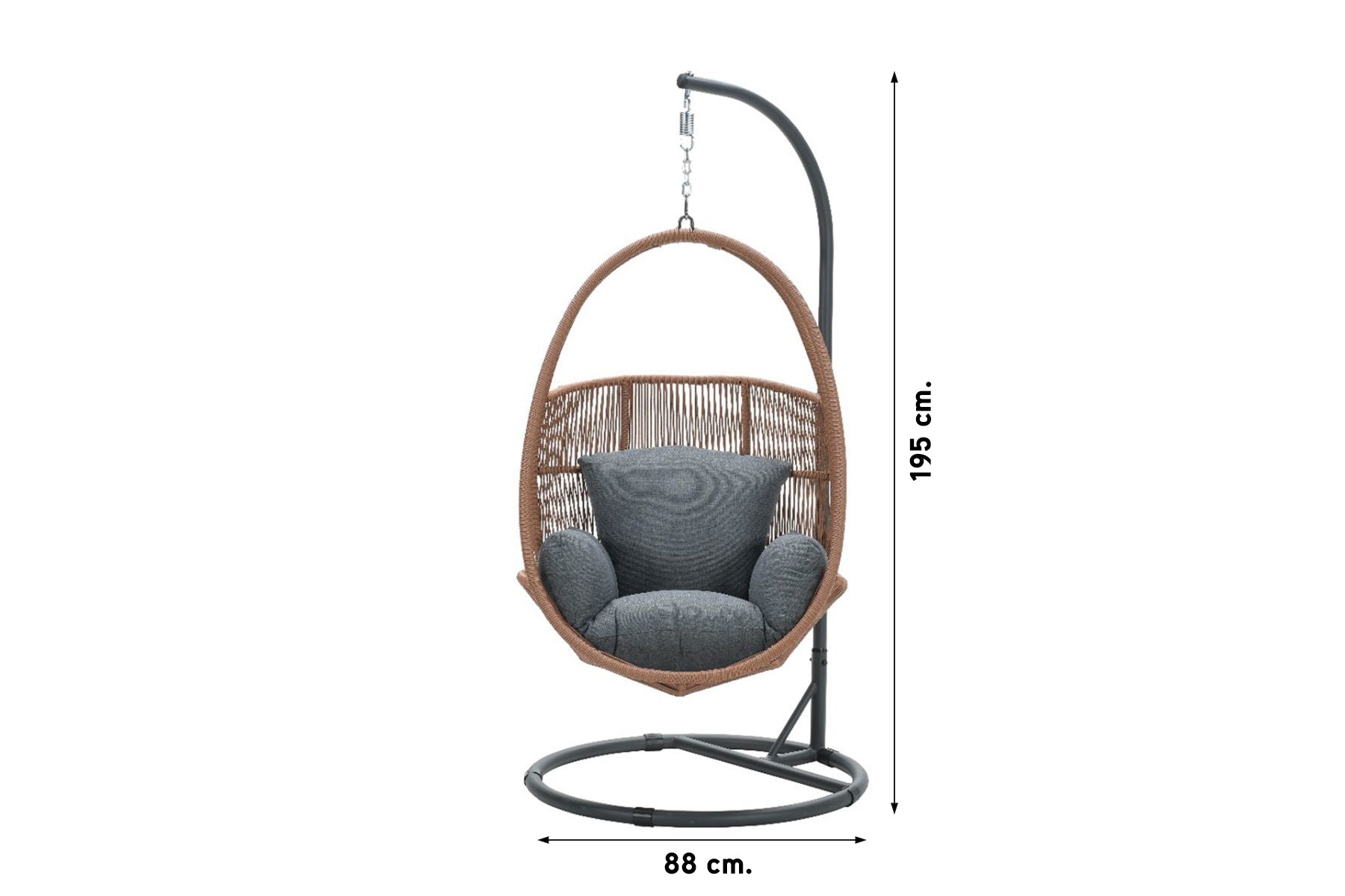 Heerlijk ontspannen in de Panama swing egg. Het comfortabele loungekussen zorgt ervoor dat u helemaal tot rust komt. De Panama swing egg heeft een retro design en is voorzien van een stevig stalen frame. Het frame heeft een grijze poedercoating en zorgt voor een stabiele hangconstructie. De Panama swing egg is een absolute must-have voor op u terras. Het ei zelf is gemaakt van aluminium, om dit materiaal is het rope (touw) gevlochten in de kleur Copper/koper.