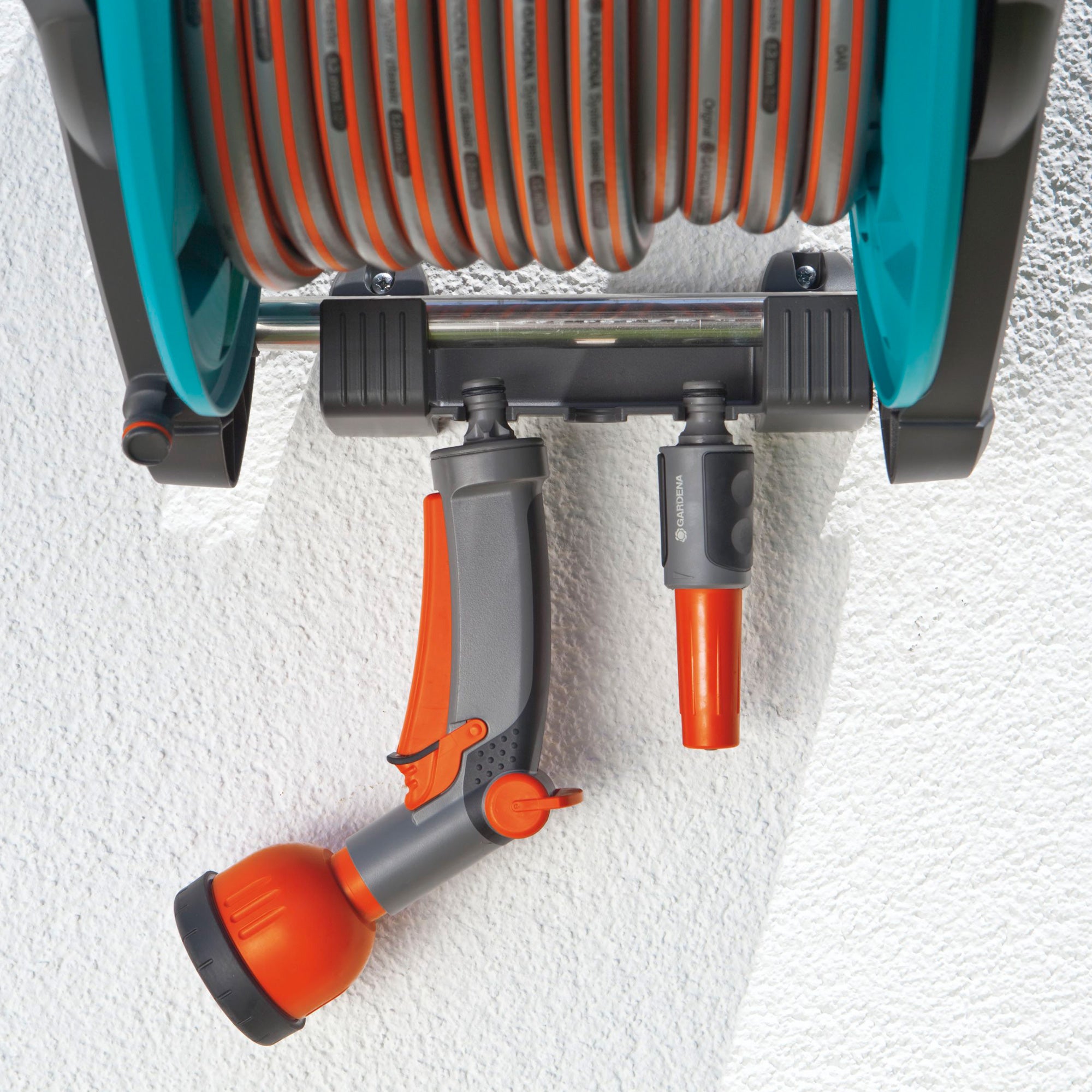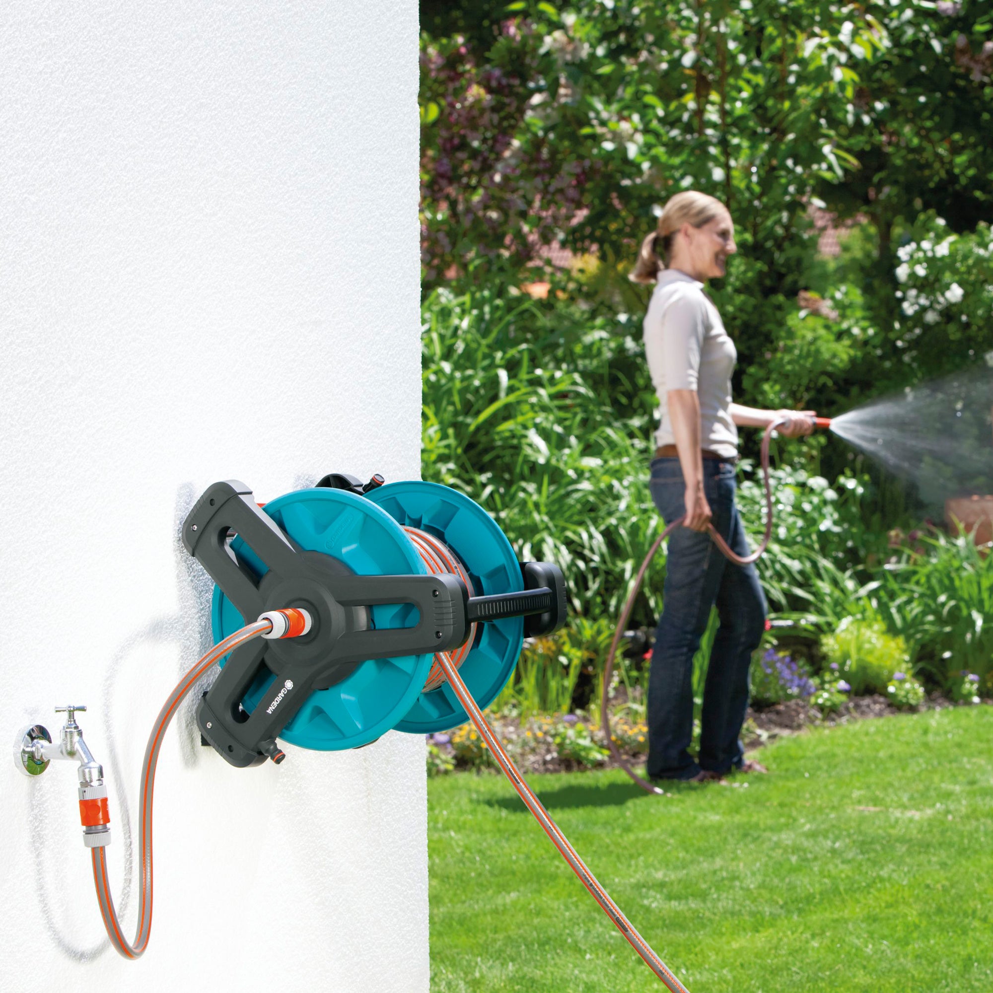 Aan de muur bevestigen De Gardena Wandslangenhouder 50 Classic Compleet is een slangenhouder die gemakkelijk aan de muur kan worden bevestigd. Uiteraard kan hij ook losgenomen worden voor vrij gebruik in de tuin. We raden deze haspel aan voor kleine tot middelgrote tuinen. Met een slanglengte van 20 meter is iedere plek in de tuin dan gemakkelijk bereikbaar!