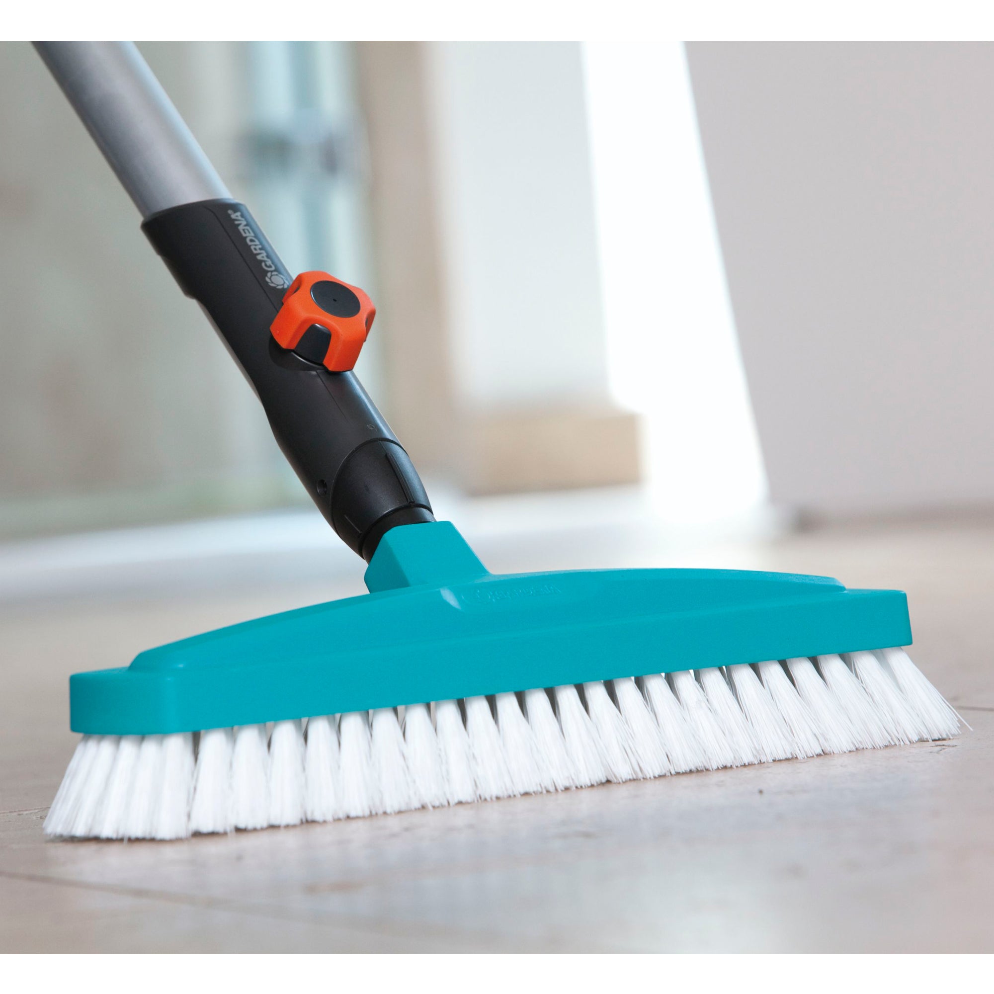 De Gardena Combisystem schrobber is te gebruiken met een van de Combisystem stelen. Er wordt geadviseerd om deze schrobber te gebruiken in combinatie met een steellengte van honderd dertig tot honderd vijftig centimeter. De elastische borstelharen zijn vervaardigd van polypropyleen.