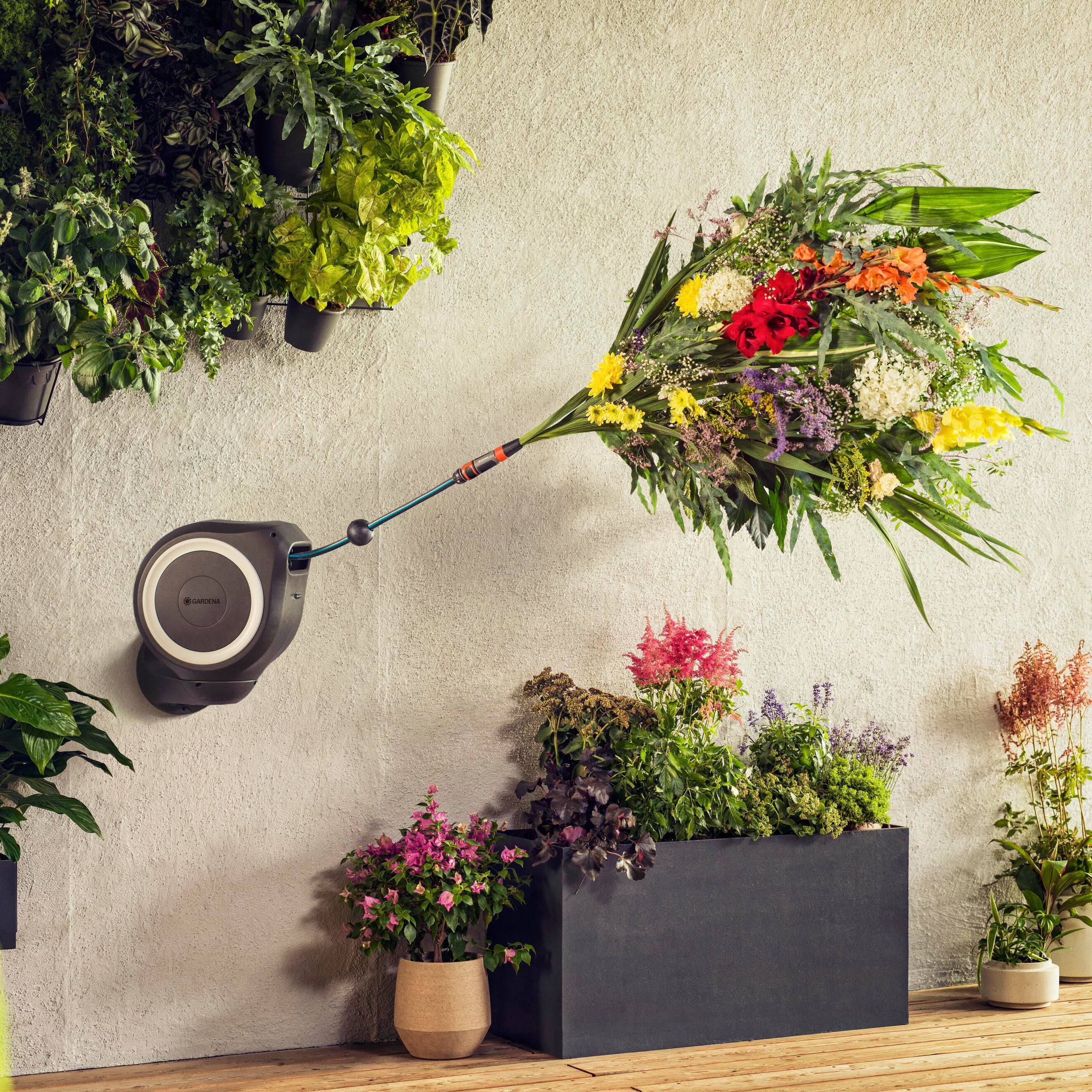 - Sproeiers, tuinspuiten en wasborstels kunnen aan de muurbeugel worden opgehangen