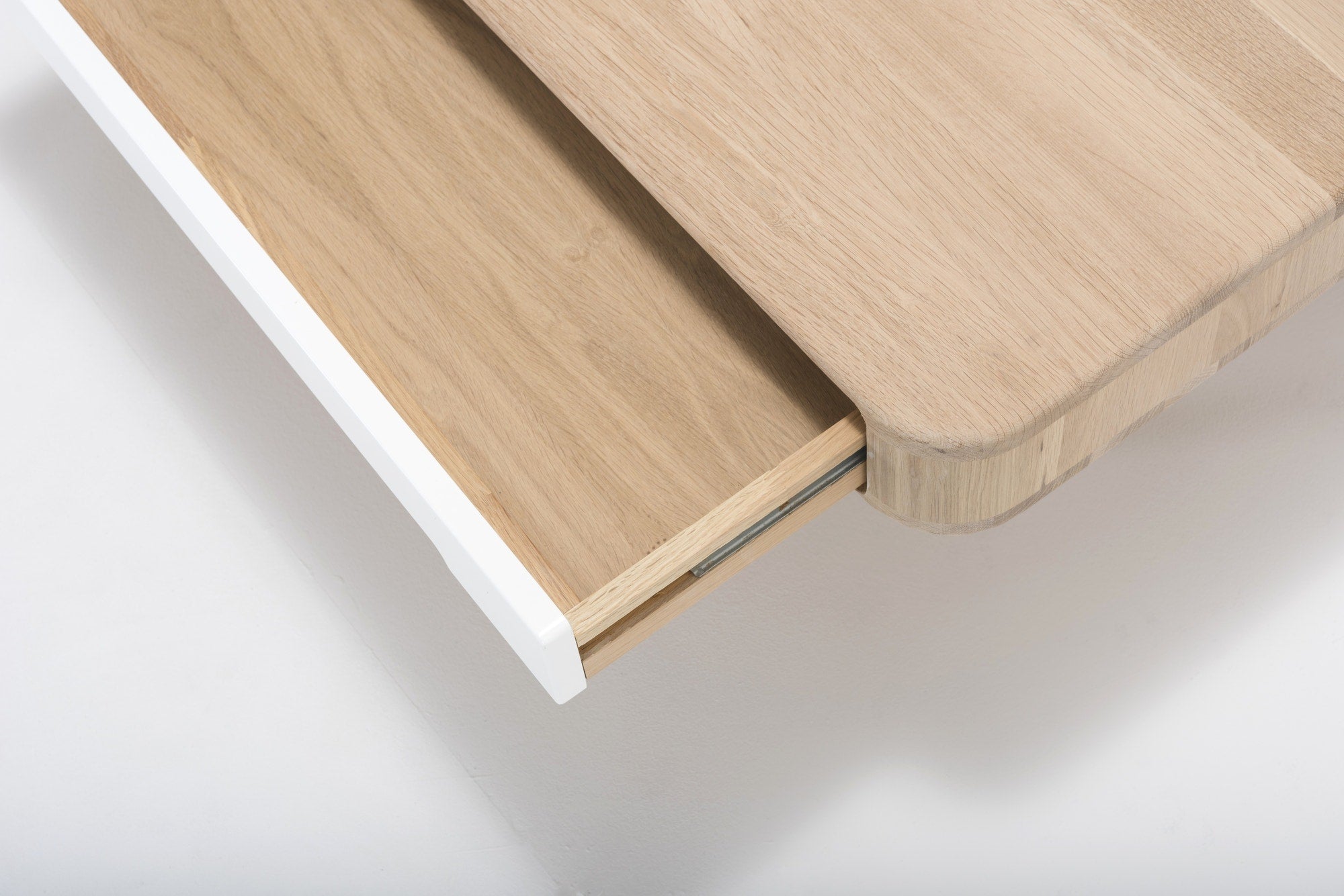 Door de witte lades krijgt de salontafel een karakteristieke look en valt hij echt op in je interieur. De tafel is dankzij de lades niet alleen erg mooi om te zien, maar ook nog eens heel functioneel. Zo heb je genoeg ruimte om bijvoorbeeld onderzetters, waxinelichtjes of tijdschriften op te bergen. De Ena Club salontafel is beschikbaar in twee verschillende houtafwerkingen en twee verschillende formaten. Er is een vierkante variant van 90x90 cm en een rechthoekige variant van 120x60 cm.