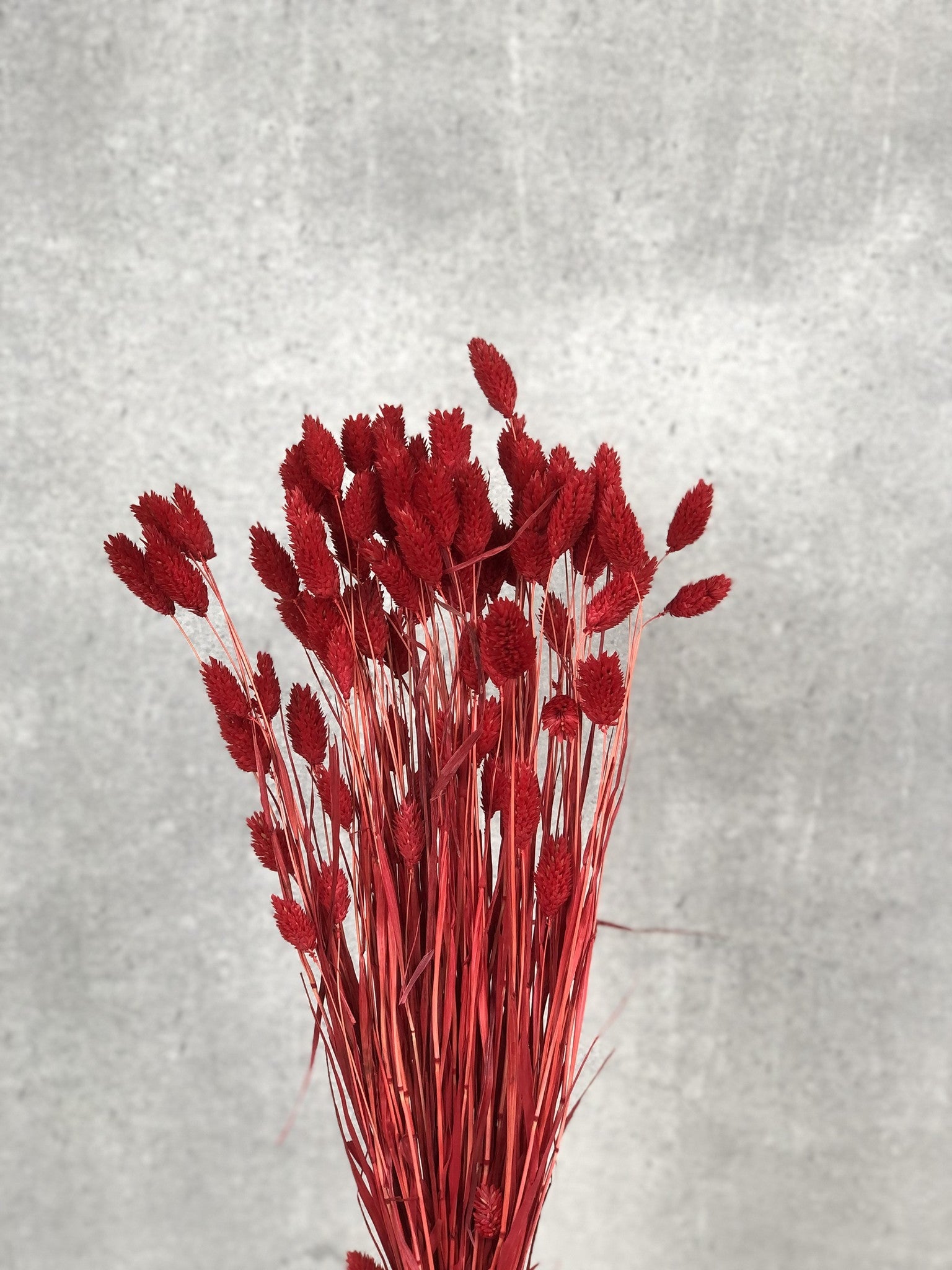 Gedroogde phalaris in de kleur rood. Lengte ongeveer 65 centimeter.