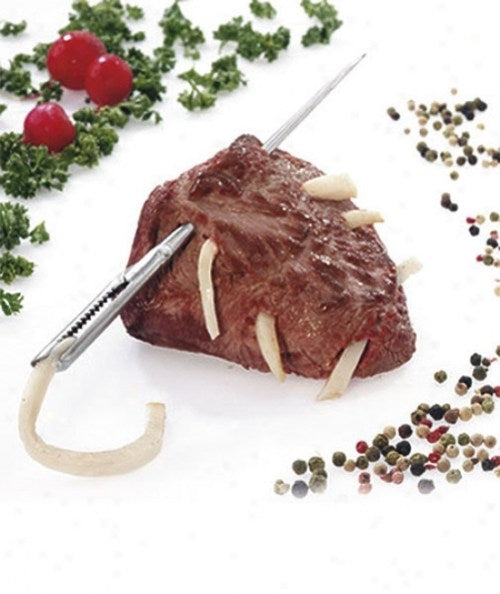 Maak een mooi stuk wild of ander vlees nog lekkerder door het te doorrijgen met vet of kruiden. Het vlees wordt er niet alleen malser van, het krijgt ook nog eens veel meer smaak. Door reepjes vet of takjes kruiden aan deze lardeernaald te bevestigen, kun je dit makkelijk door het vlees rijgen. Vervolgens kun je het vlees verder bereiden zoals gewenst. Je zult versteld staan van het resultaat. Omdat de naald van RVS gemaakt is, kan hij na gebruik gewoon de vaatwasser in.