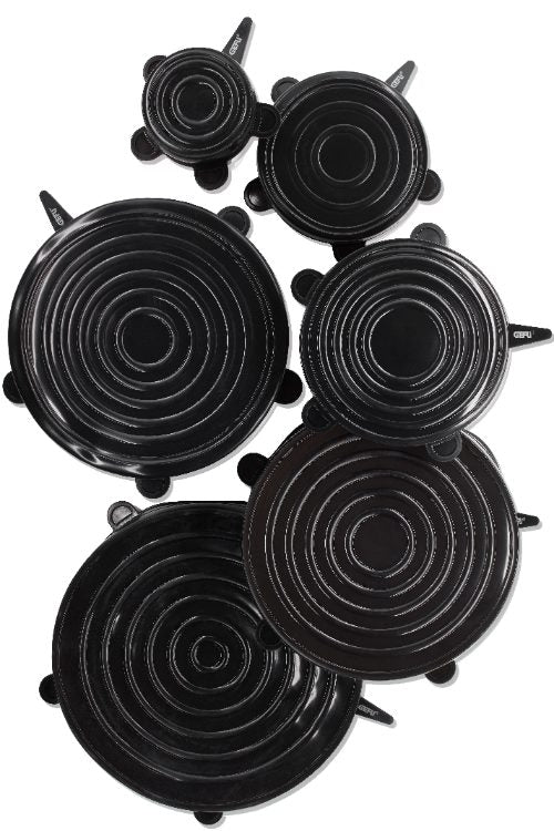 Siliconen Deksels FLEXIFRESH, Set van 6 - Gefu Op ieder potje past een dekseltje, letterlijk en figuurlijk. Daarom is het handig als je een voorraad deksels hebt om zo veel mogelijk vers te kunnen bewaren. De set bestaat uit zes flexibele, siliconen deksels met een handig lipje om af te kunnen dekken of deze weer eenvoudig los te maken. De set bestaat uit deksels met een diameter van: