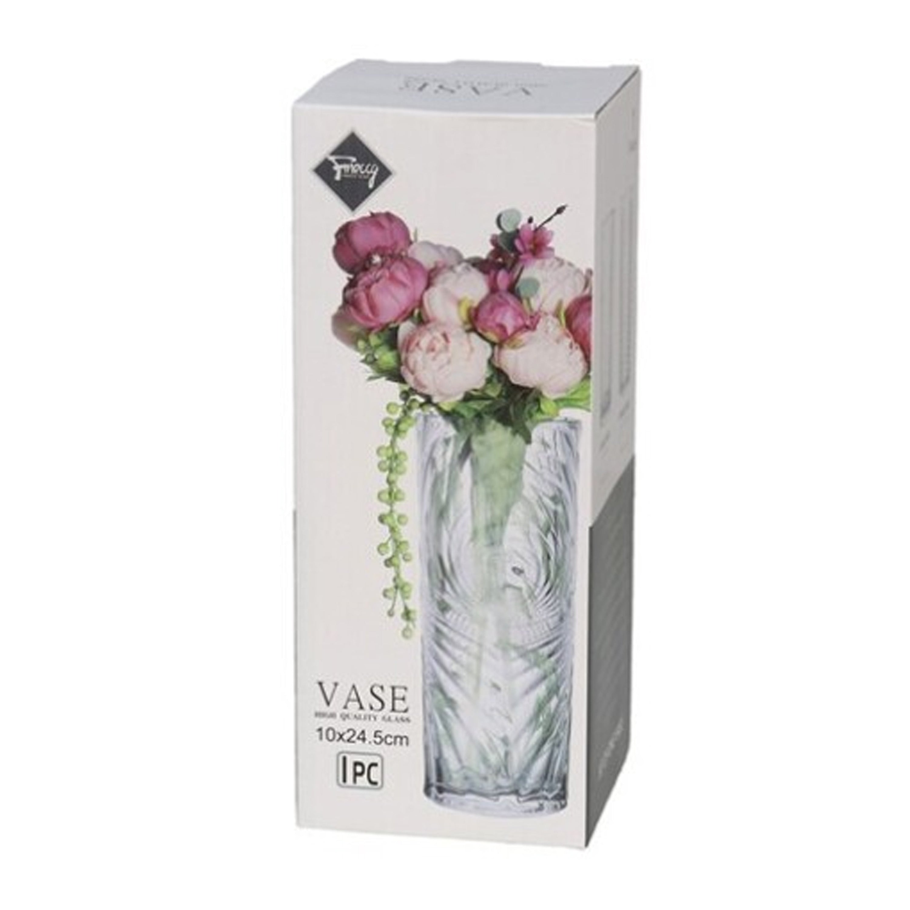 Bloemen vaas in de vorm van een cilinder met een geribbeld relief. Naast dat deze glazen vaas is geschikt om losse bloemen, boeketten of takken in te schikken, is deze vaas ook geschikt om met decoratie te vullen.Kenmerken: