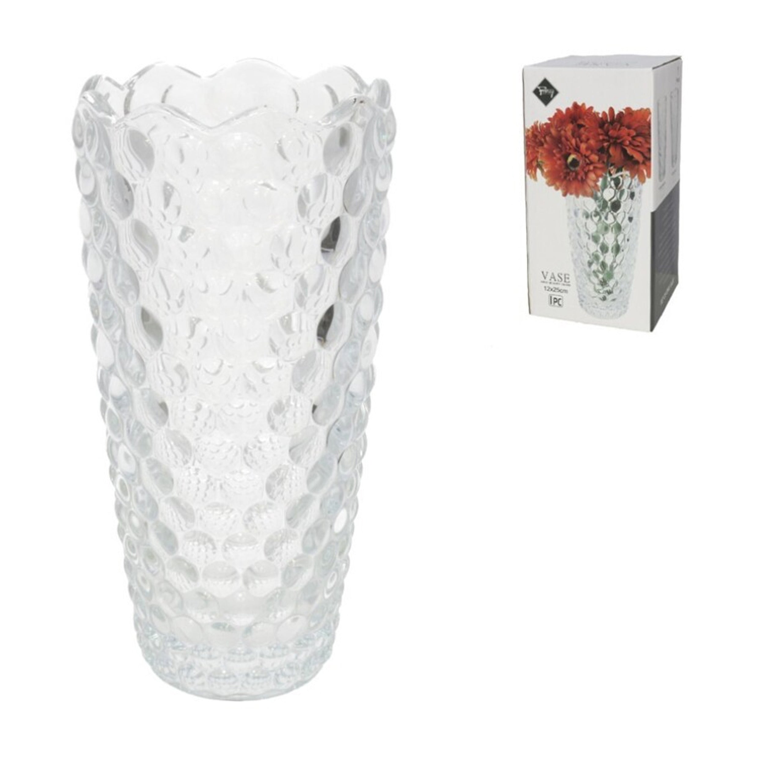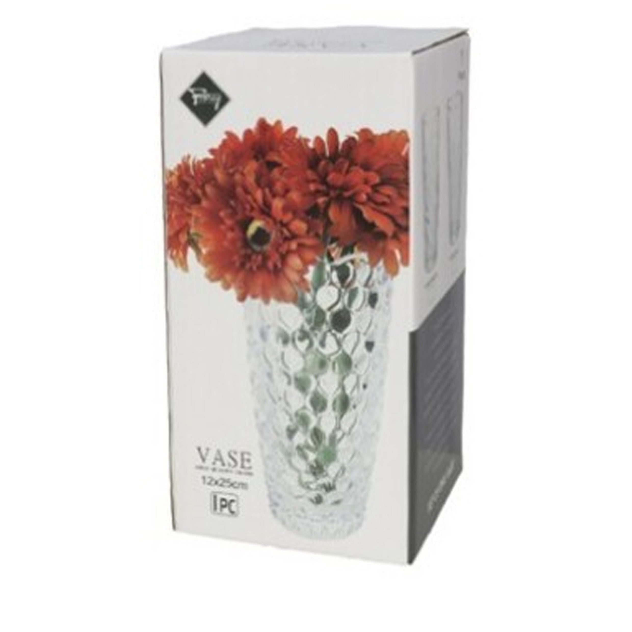 Bloemenvaas helder glas 12 x 25 cm. Naast dat deze glazen vaas geschikt is om losse bloemen, boeketten of takken in te schikken, is deze vaas ook geschikt om met decoratie te vullen. Materiaal: glas. Afmeting: ca. 12 x 25 cm.