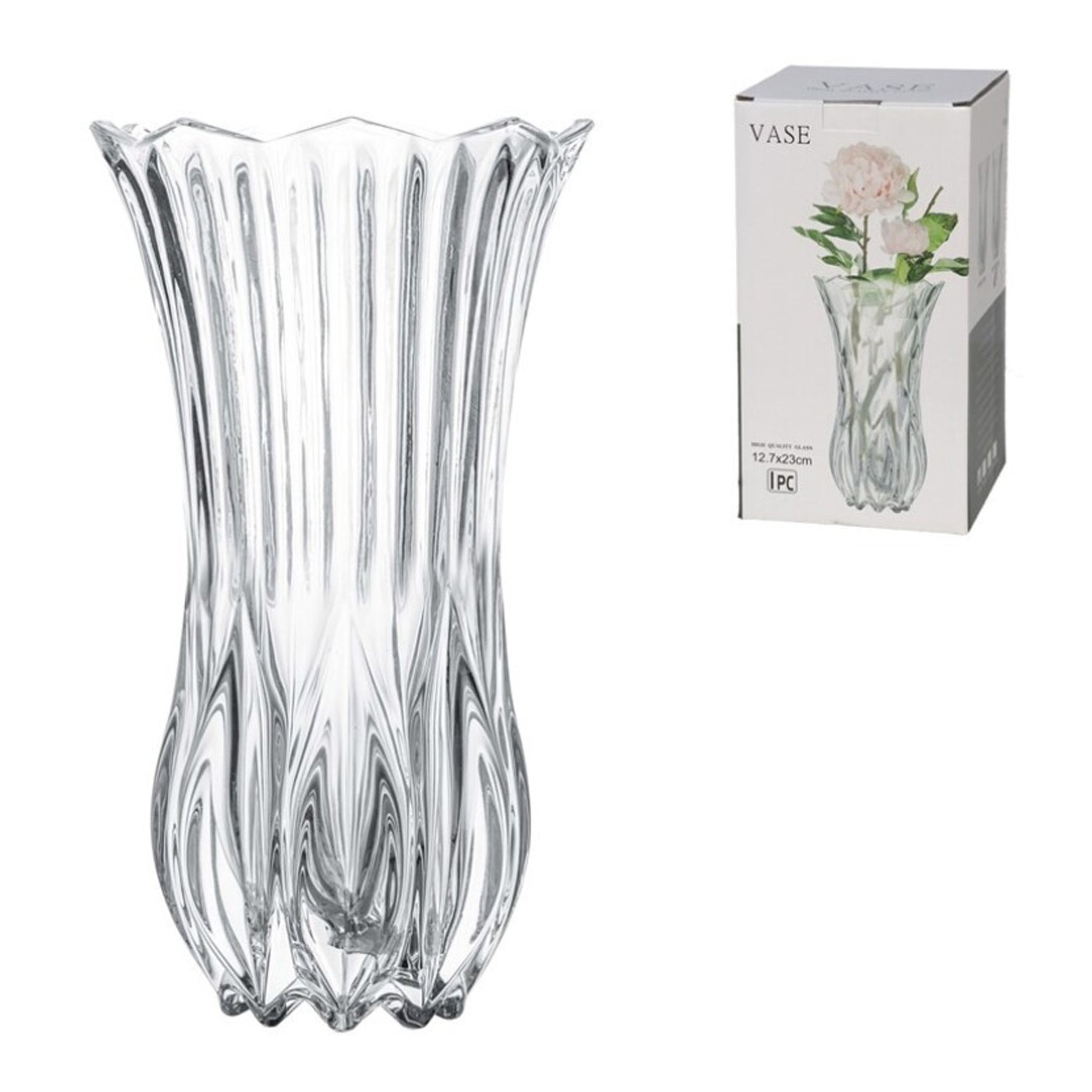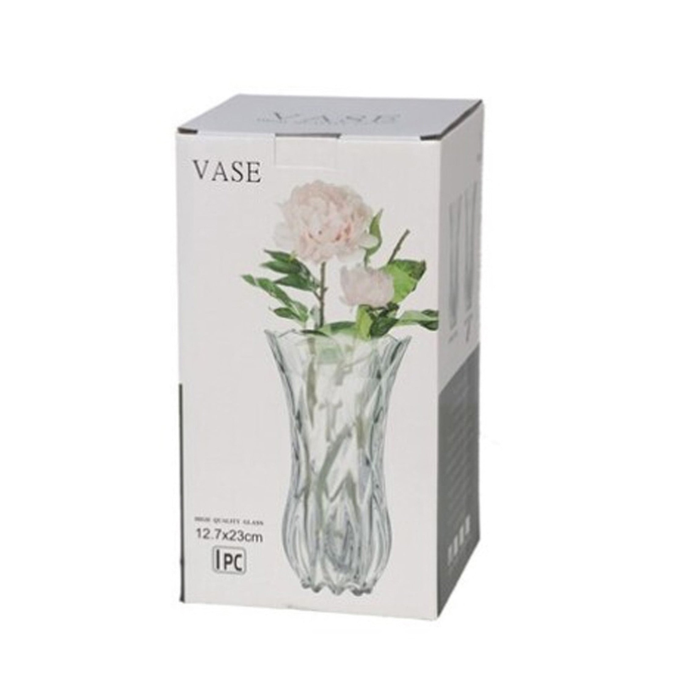 Bloemenvaas helder glas 13 x 23 cm. Naast dat deze glazen vaas geschikt is om losse bloemen, boeketten of takken in te schikken, is deze vaas ook geschikt om met decoratie te vullen. Materiaal: glas. Afmeting: ca. 12.7 x 23 cm.