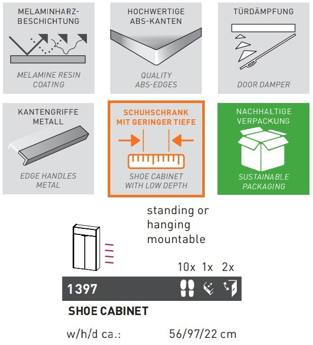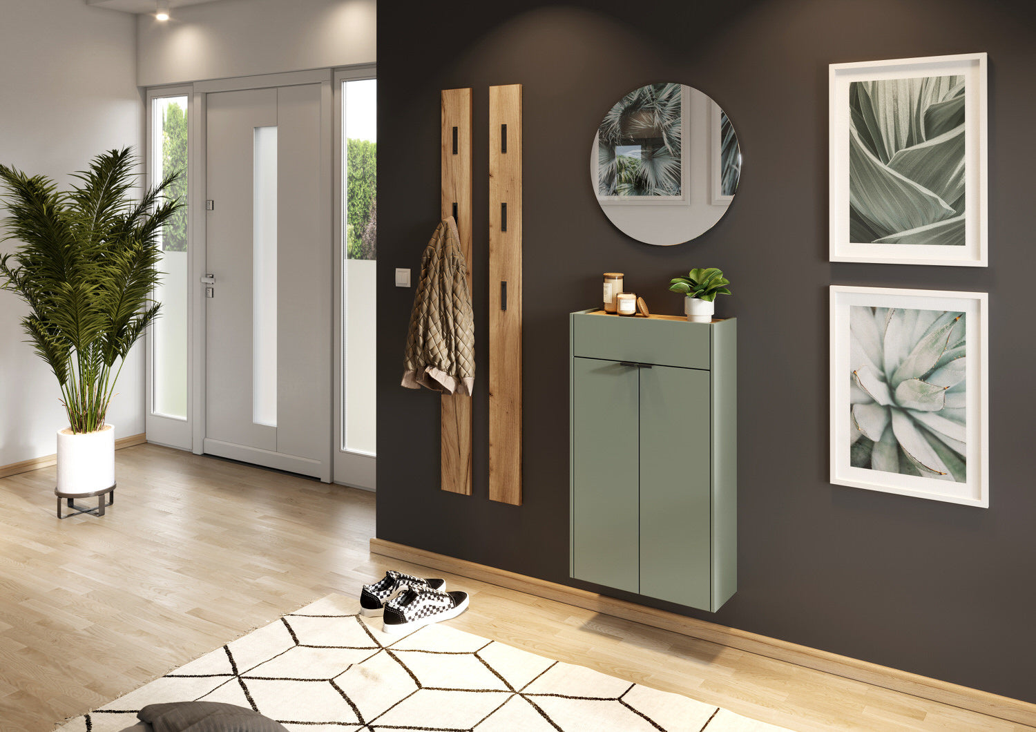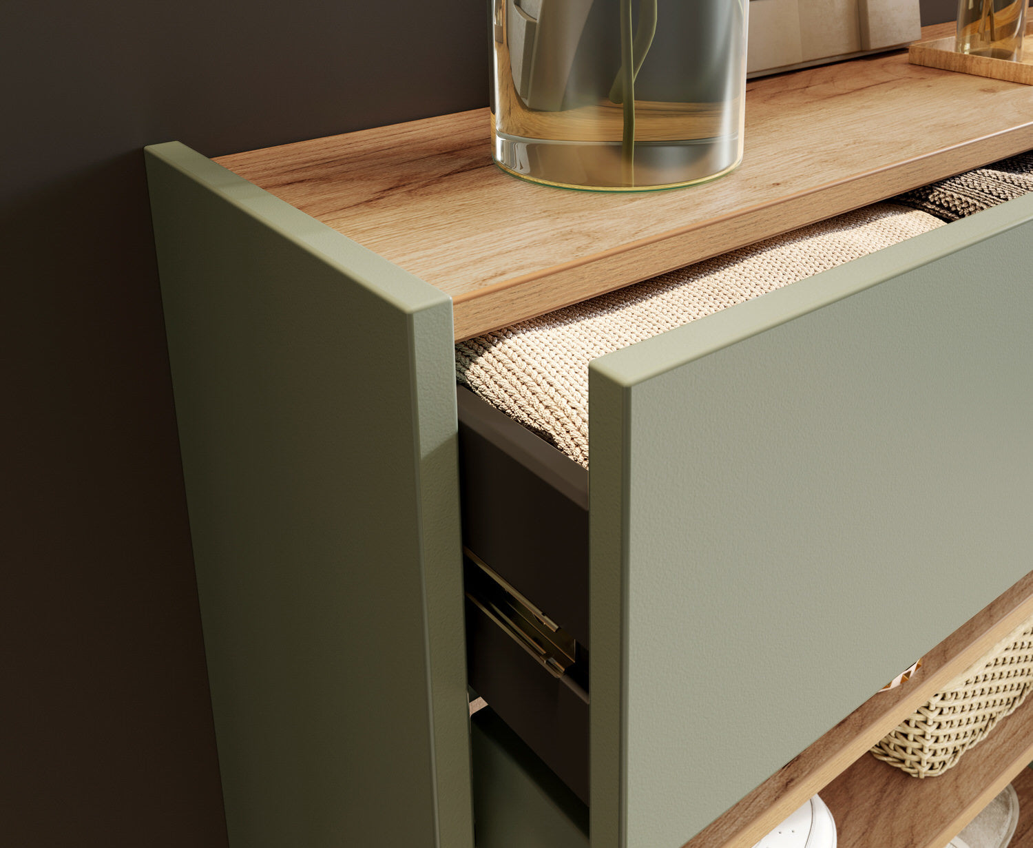 Germania Ameca Taupe Groen | Eiken Schoenenkast Hoog