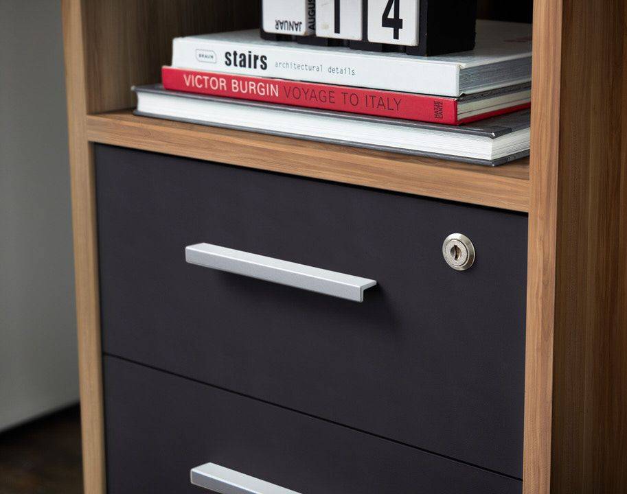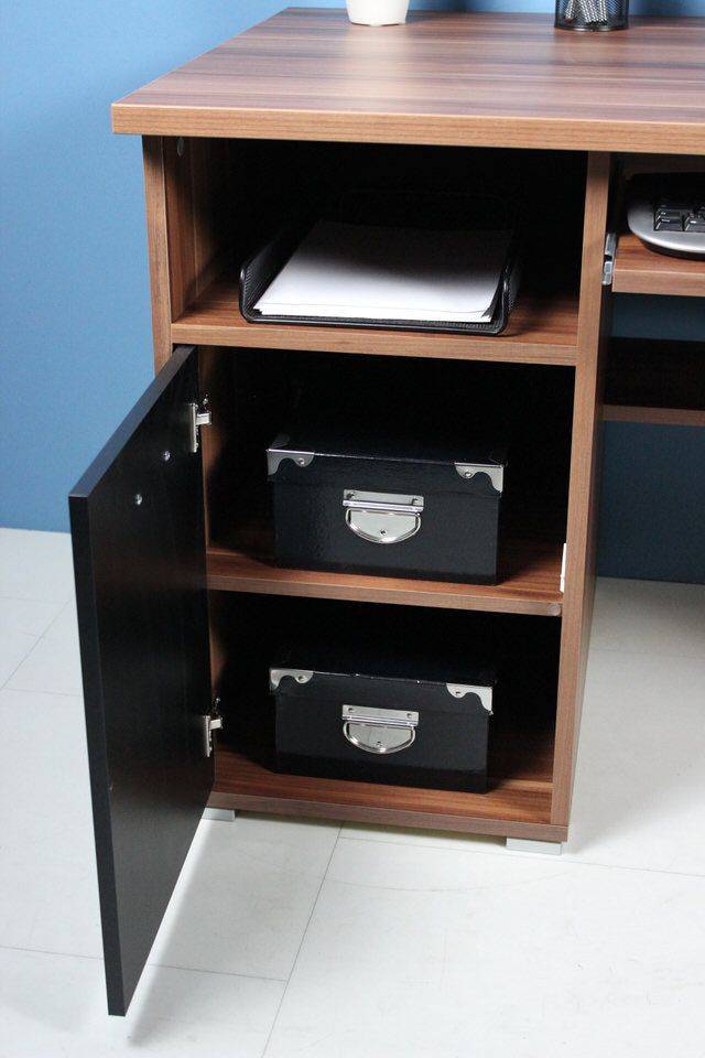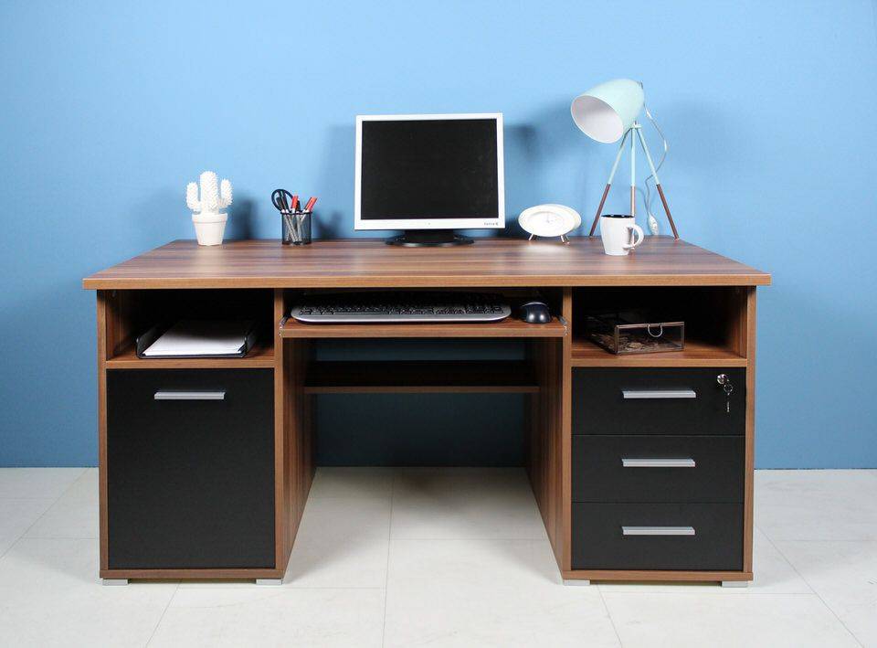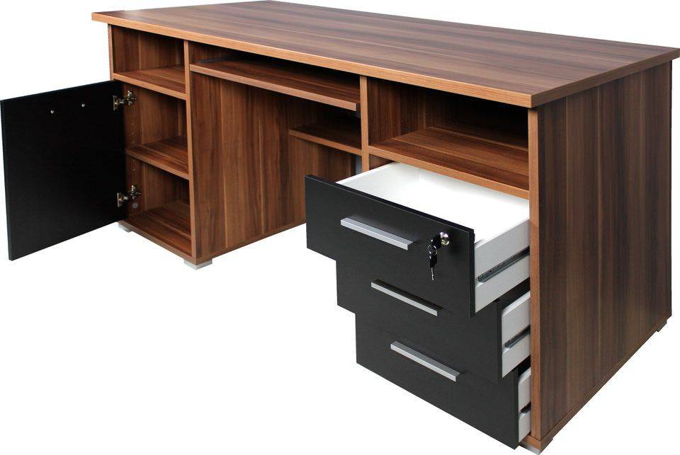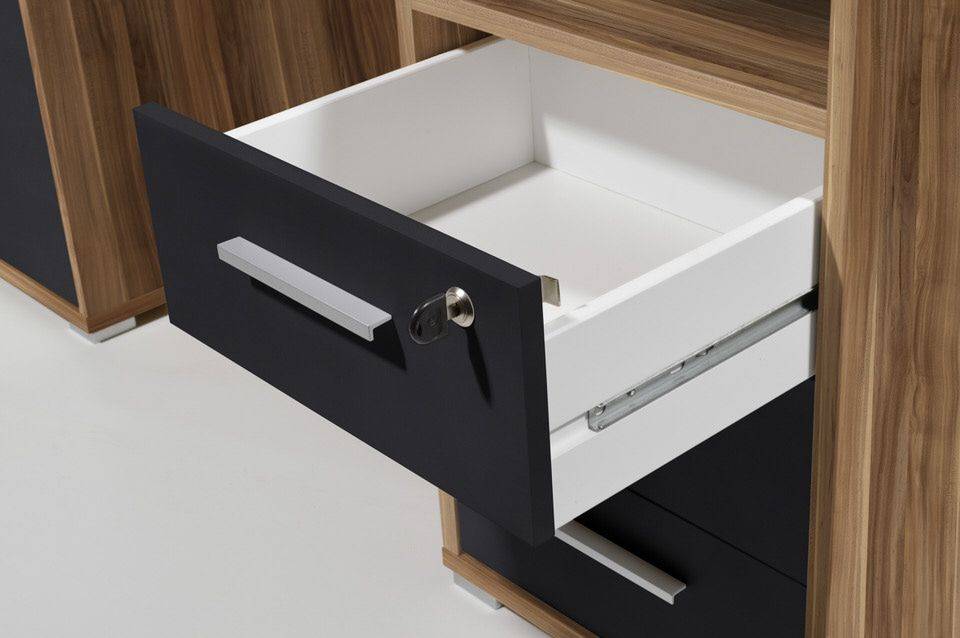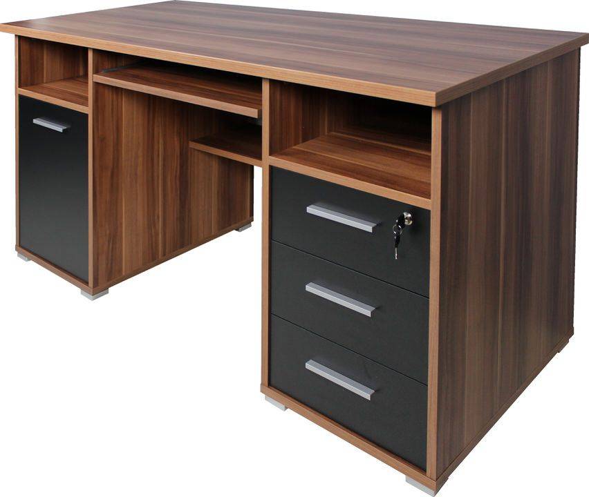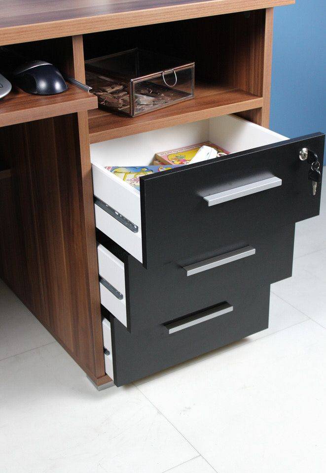 Bureau Centro is onmisbaar in jouw woonkamer, werkkamer of op kantoor. Het functionele ontwerp zorgt ervoor dat jij jezelf volledig kunt concentreren op je werk of op je studie. Dit Computerbureau is stijlvol afgewerkt en geeft het design bureau een eigentijdse uitstraling waardoor hij perfect matcht bij elke interieur. Het houten bureau beschikt over een vaste ladeblok met drie ruime lades waarvan eentje beschikt over een slot. De lades kun je ideaal gebruiken om je papieren, boeken of pennen netjes op te bergen Verder beschikt dit bureau over een toetsenbordlade en een printer legplank. Het kastje aan de linkerkant beschikt over een legplank. Het bureau kun je gebruiken om bijvoorbeeld jouw post netjes op te bergen in de ruime lades maar ook om leuke woonaccessoires neer te zetten. Zo geef je jouw interieur een vrolijke uitstraling en kun je je spullen overzichtelijk opbergen. Dit model is verkrijgbaar in de kleuren Antraciet, Sonoma Eiken/Wit en Walnoot/Zwart.