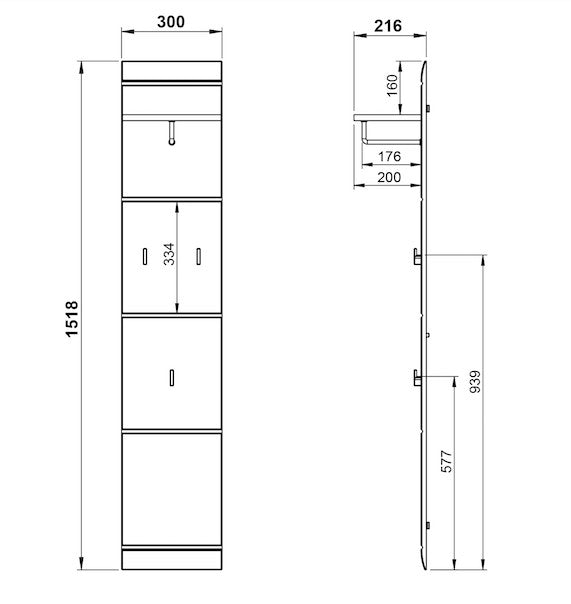 - Afmetingen: 30 x 23 x 152 cm (B x D x H)
