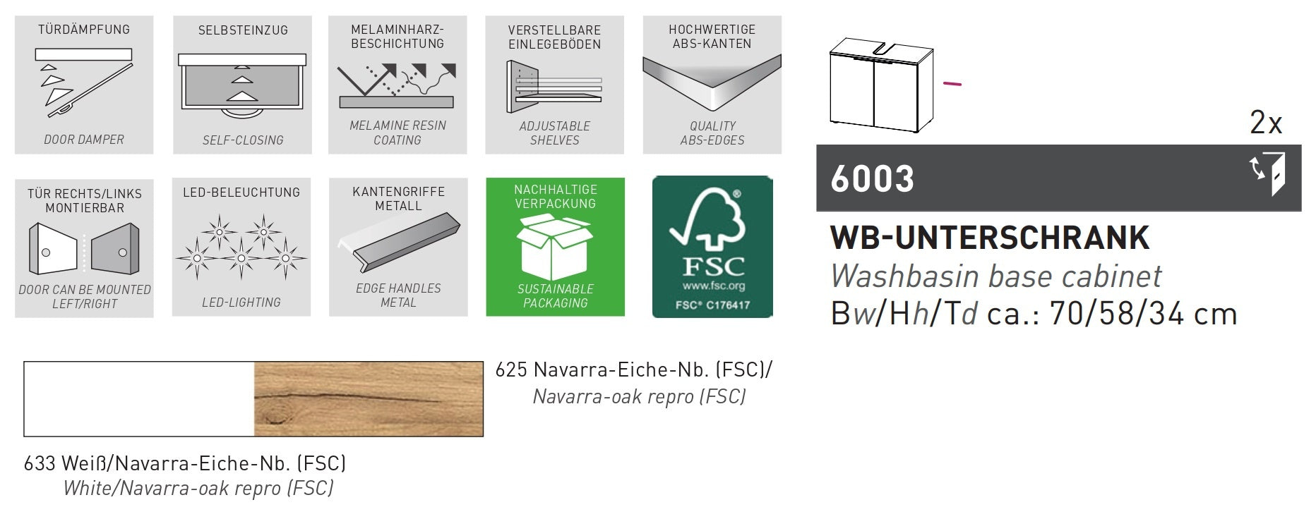 Germania Menen Wit | Eiken Wastafelonderkast 70 cm
