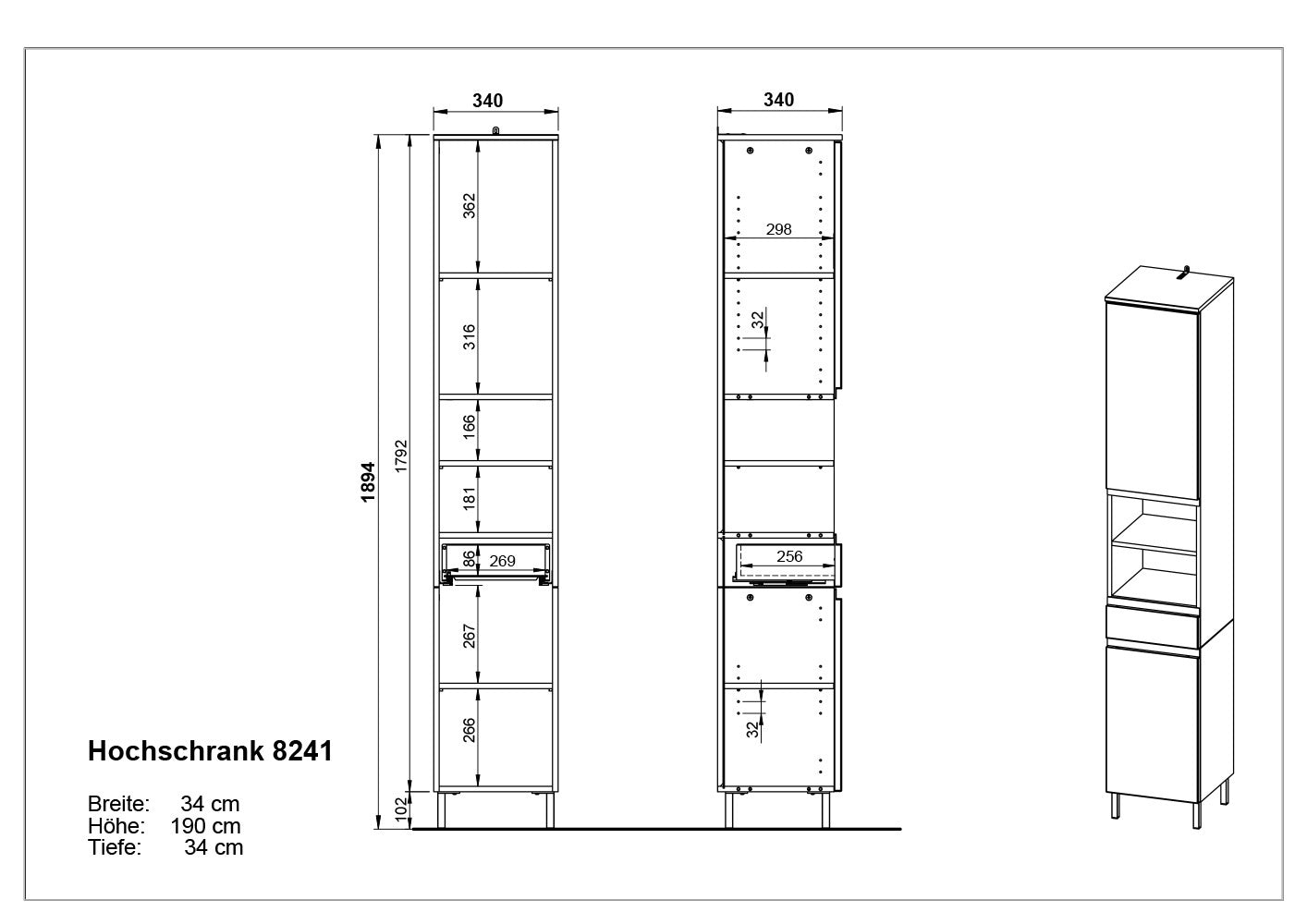 Germania Salinas Badkamerkast Hoog Hoogglans Wit