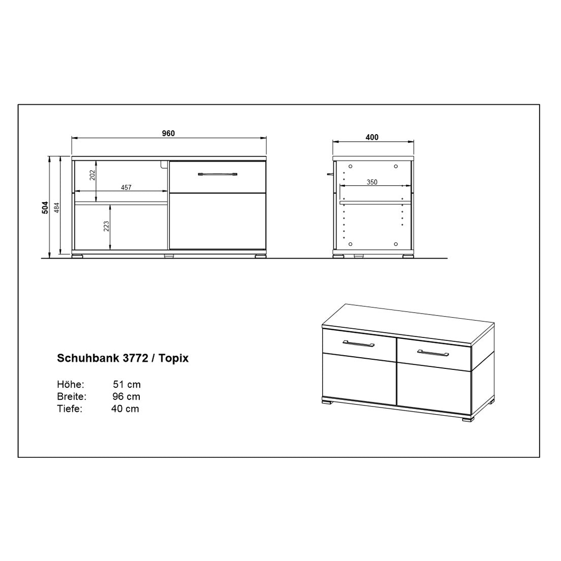 - Genoeg ruimte voor 8-10 paar schoenen: H 51 x B 96 x D 40 cm
