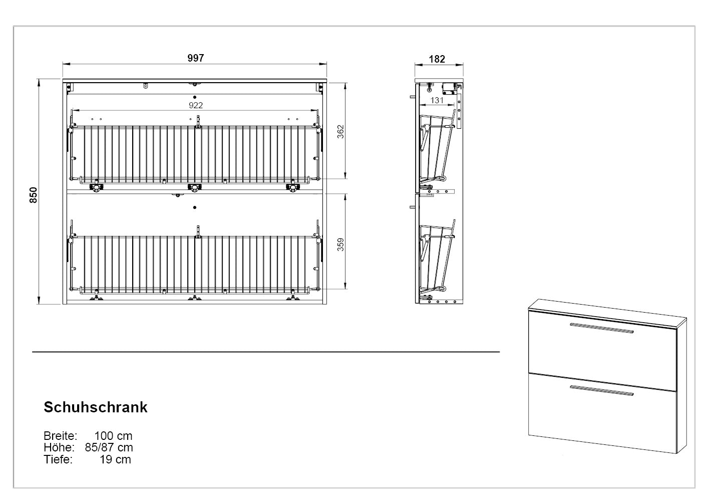 - Afmetingen: 100 x 19 x 85 cm (B x D x H)