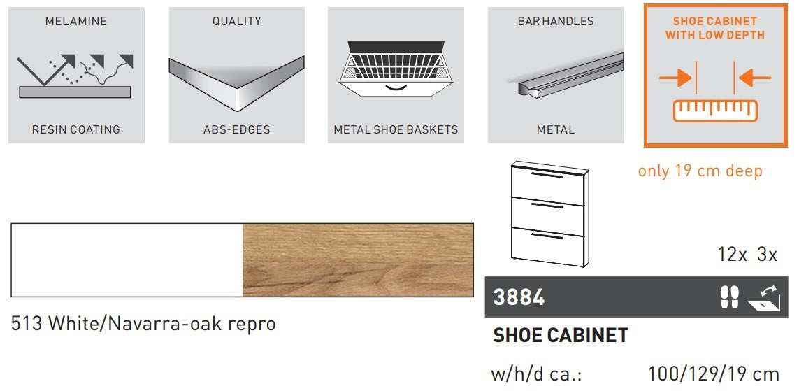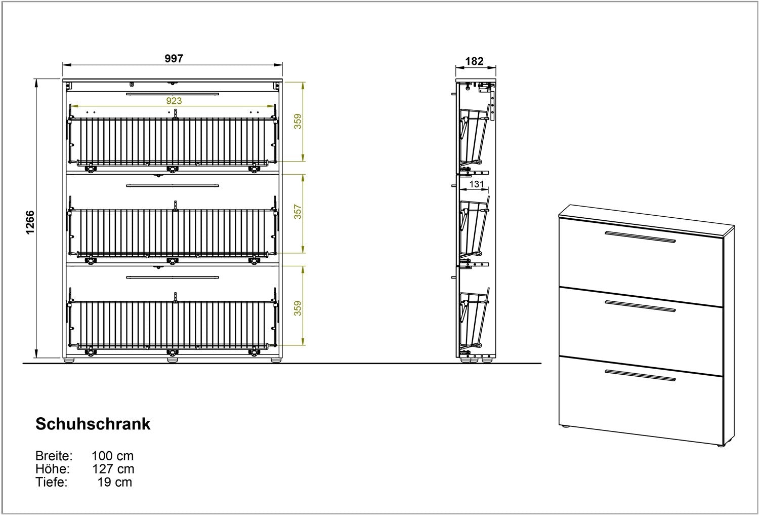 Germania Wildomar Schoenenkast 3 Kleppen Wit | Eiken
