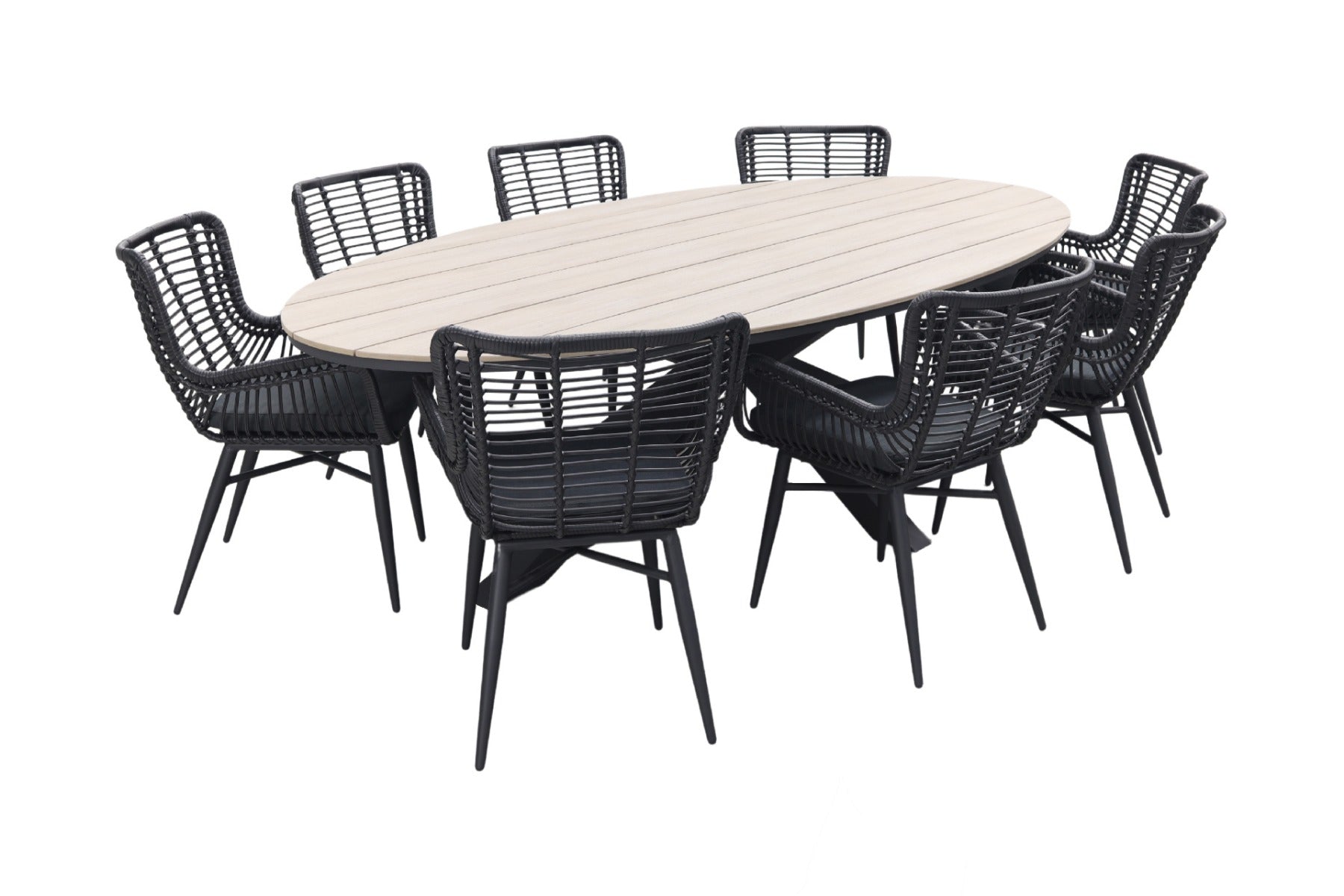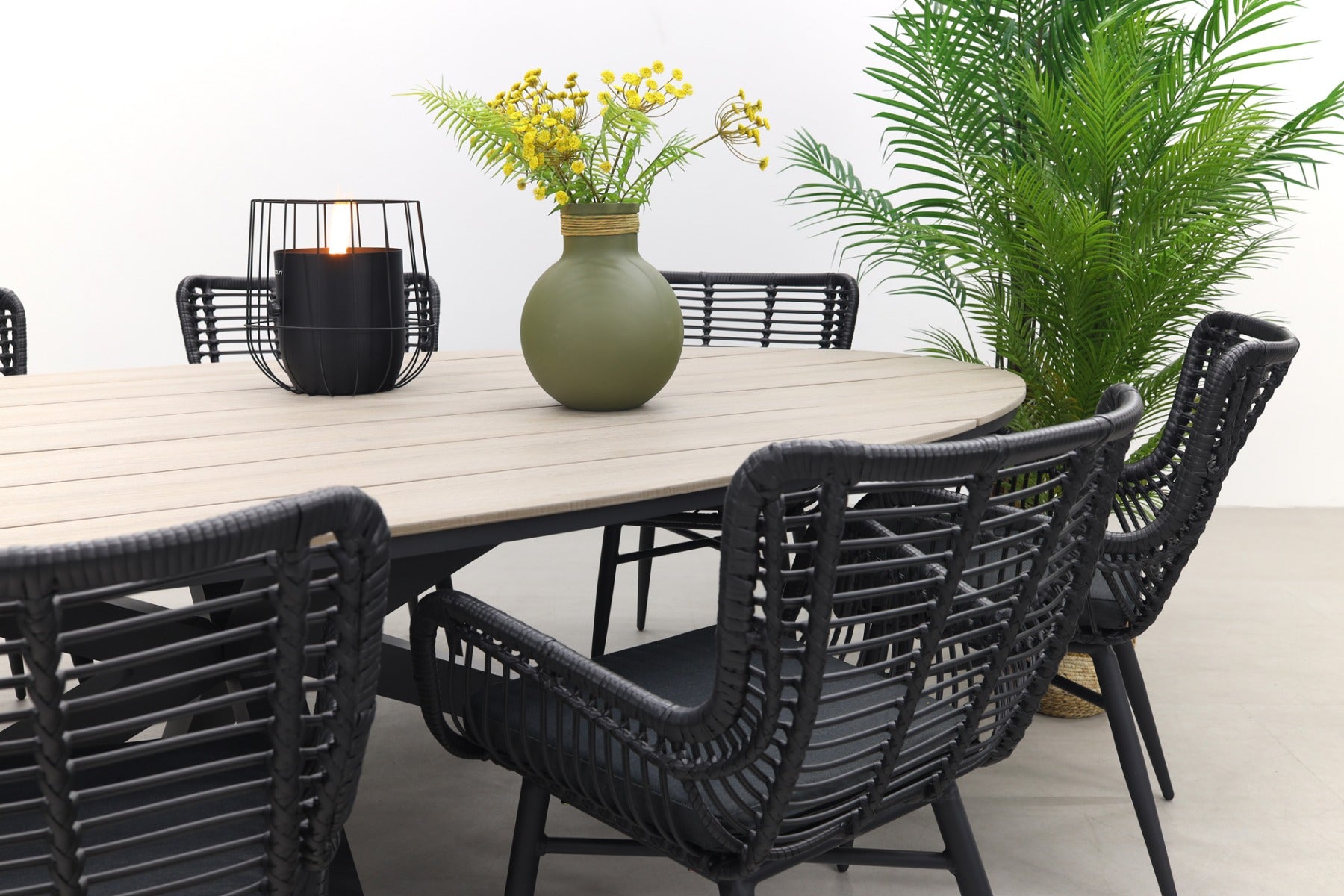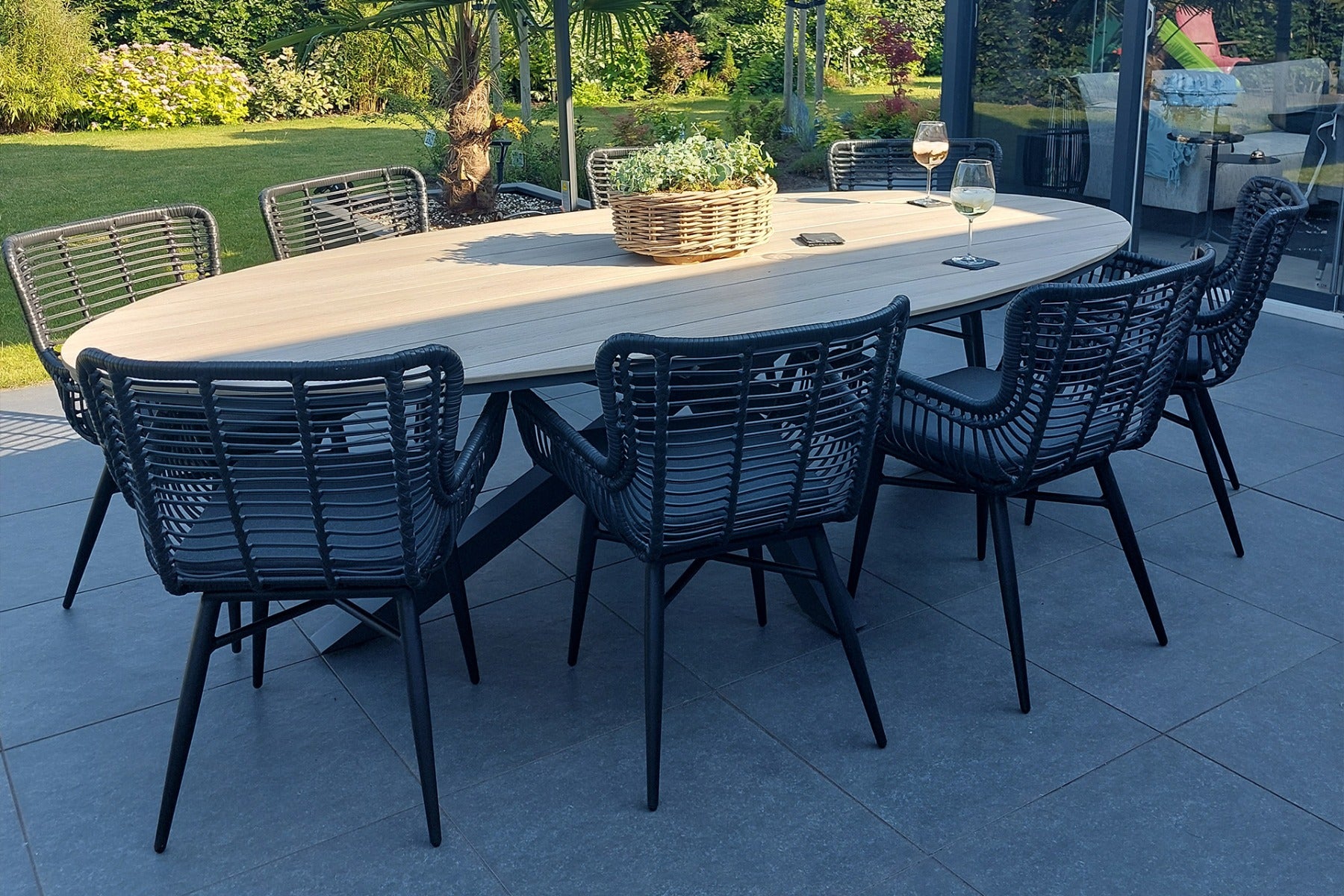 8x tuinstoel Jasmine - zwart 1x tuintafel Edison ovaal 280x140 cm.