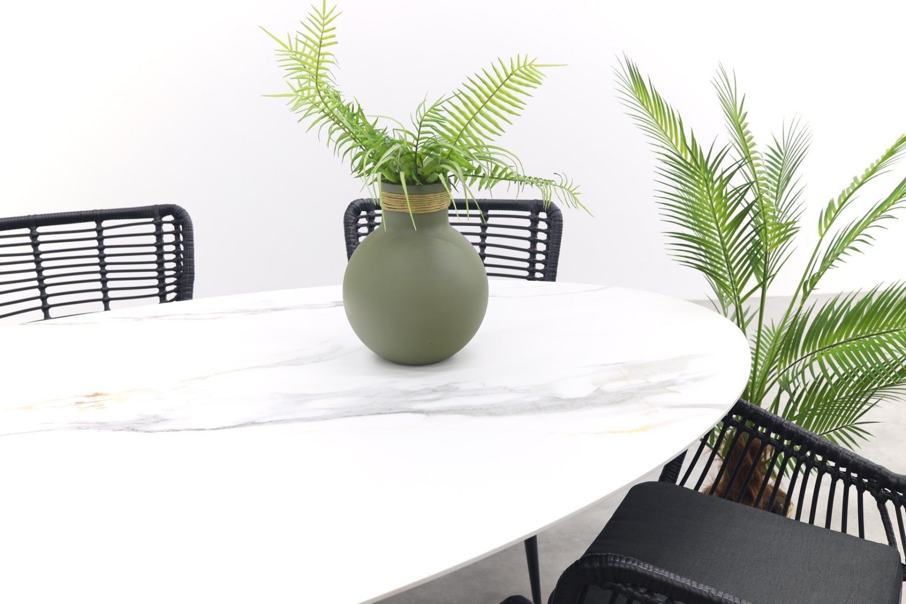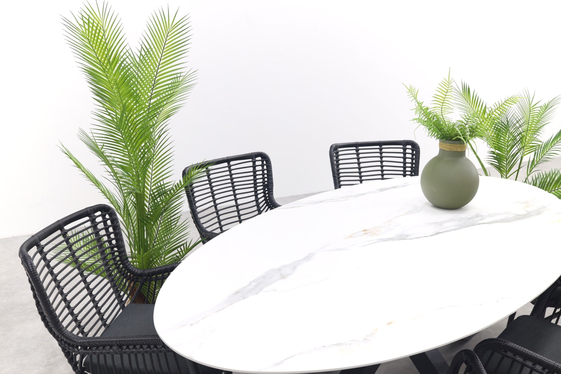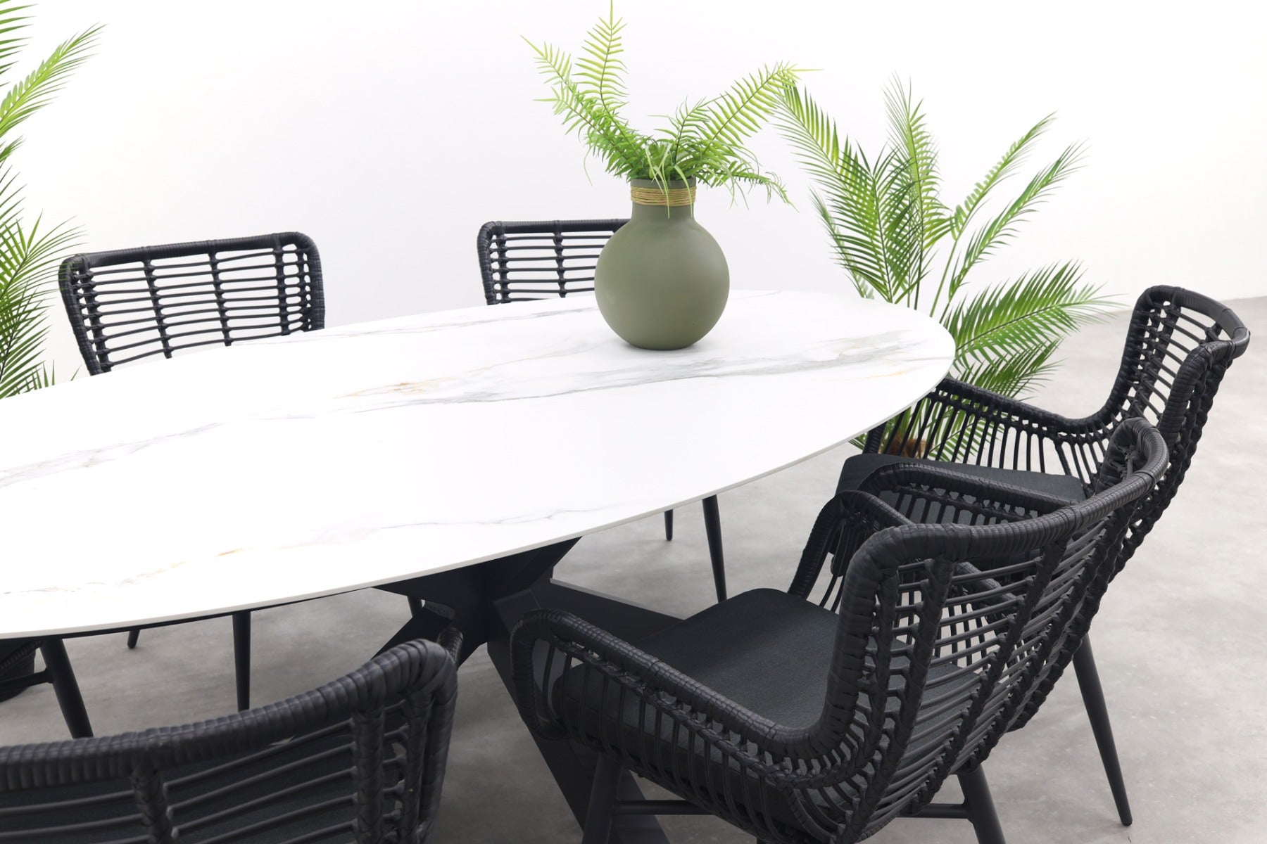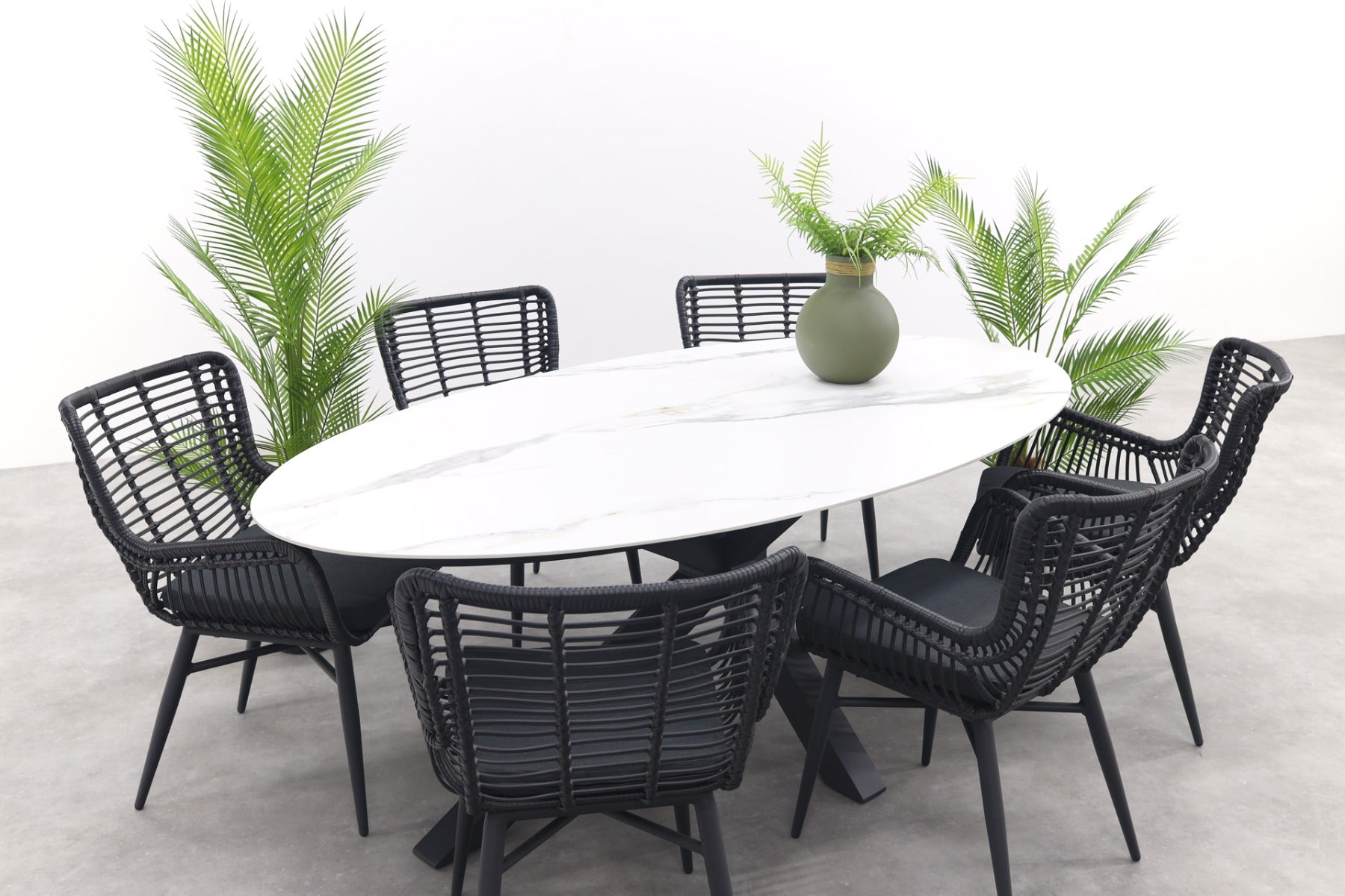 GI Ovale tuinset Scotland marmerlook wit|Jasmine stoel black–7 delig
