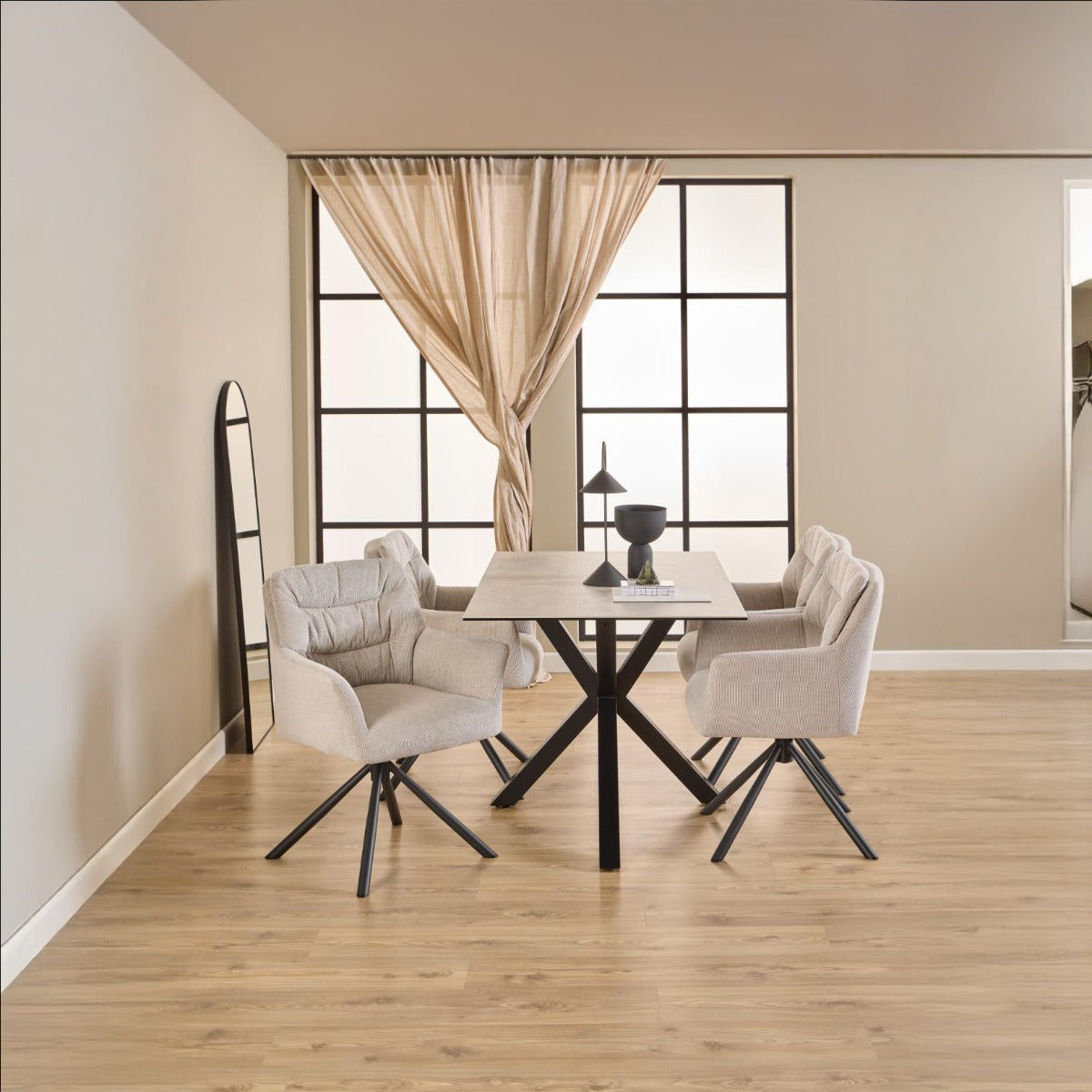Giga Living - Eetkamerstoel - Beige - Stof - Zithoogte 50cm - Traska - Set van 2
