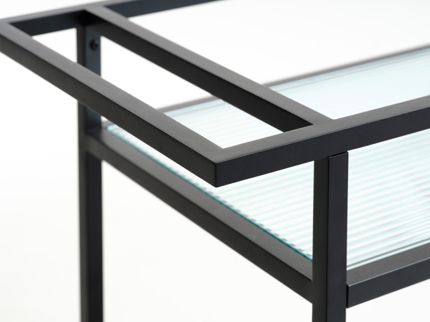 Materiaal: De Trolley Bronco is vervaardigd uit een combinatie van glas en metaal. Deze materialen zorgen niet alleen voor een stevige constructie, maar geven de trolley ook een moderne en industriële uitstraling. Het glas biedt een elegante touch, terwijl het metaal zorgt voor stabiliteit en duurzaamheid.