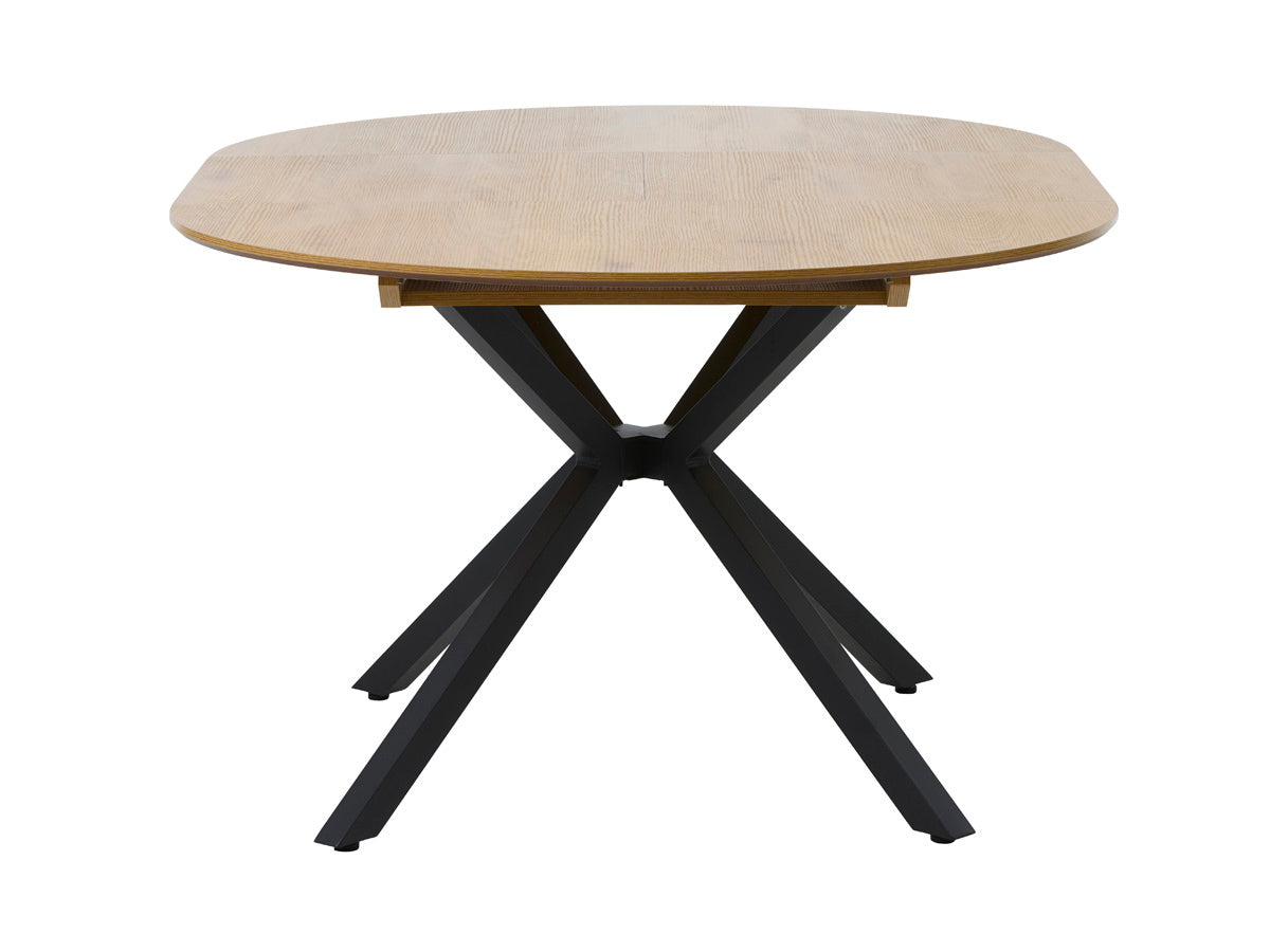 Materiaal: Het tafelblad is gemaakt van eiken fineer, wat zorgt voor een warme en natuurlijke uitstraling. Het onderstel is vervaardigd uit stevig metaal, wat bijdraagt aan de stabiliteit en duurzaamheid van de tafel. Deze combinatie van materialen maakt de tafel zowel praktisch als stijlvol.