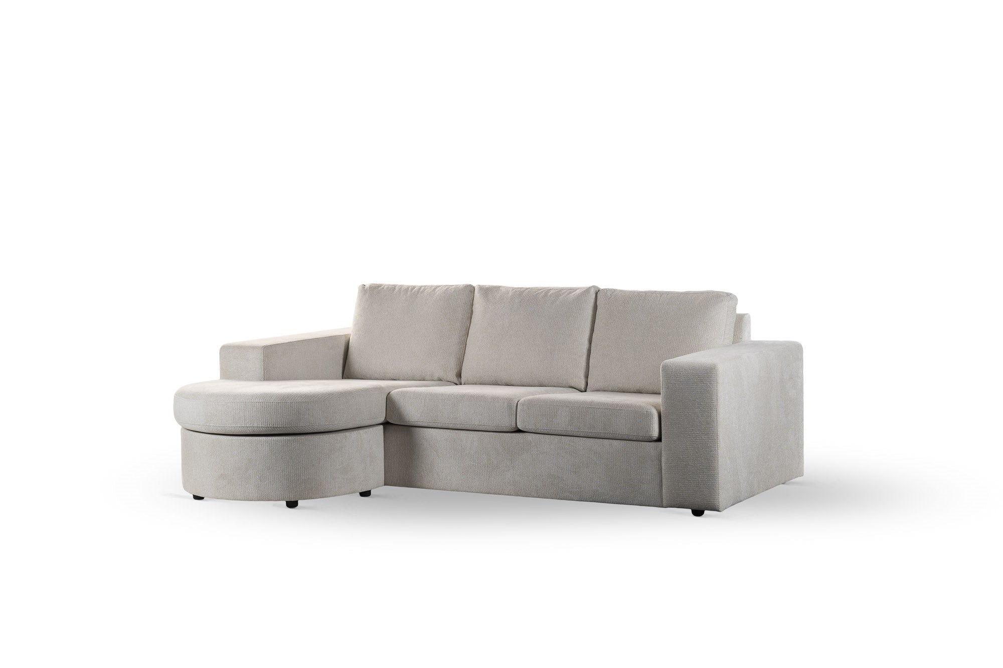 Met zijn royale afmetingen biedt de 3-Zits Bank Lord Beige voldoende ruimte voor het hele gezin. Bestel deze prachtige bank vandaag nog en profiteer van gratis thuisbezorging bij bestellingen boven de €100. Voeg een vleugje luxe toe aan je interieur met deze eyecatcher! Deze innovatieve bank biedt ultieme flexibiliteit met een loungegedeelte dat moeiteloos aan zowel de linkerkant als de rechterkant kan worden geplaatst.