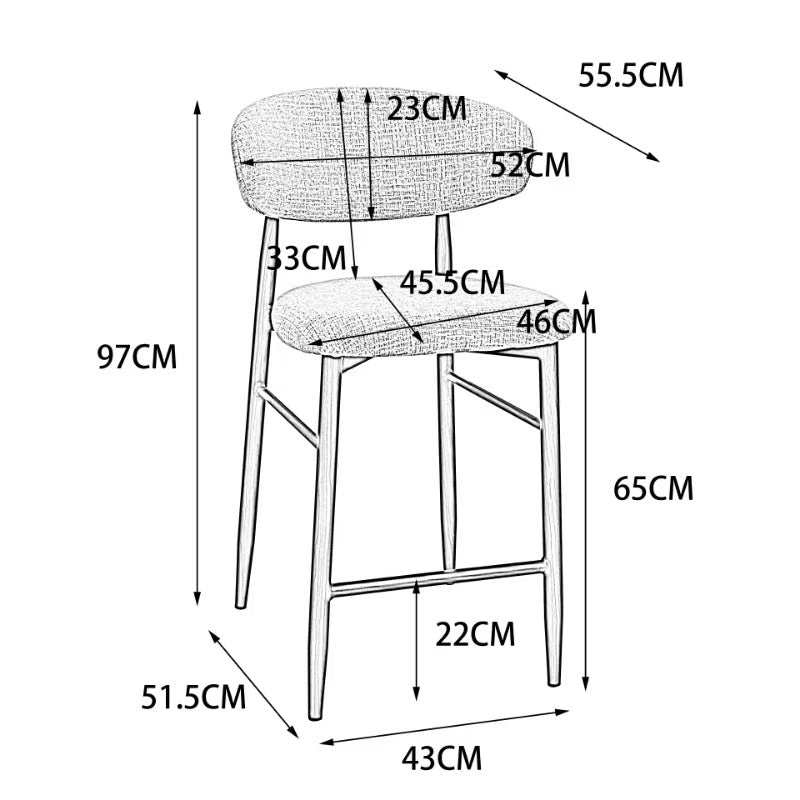Materiaal: De zitting van de Barstoel Alexia is gemaakt van stof/textiel, wat zorgt voor een comfortabele zitervaring. Het metalen onderstel biedt een stevige basis en draagt bij aan de duurzaamheid van de stoel.