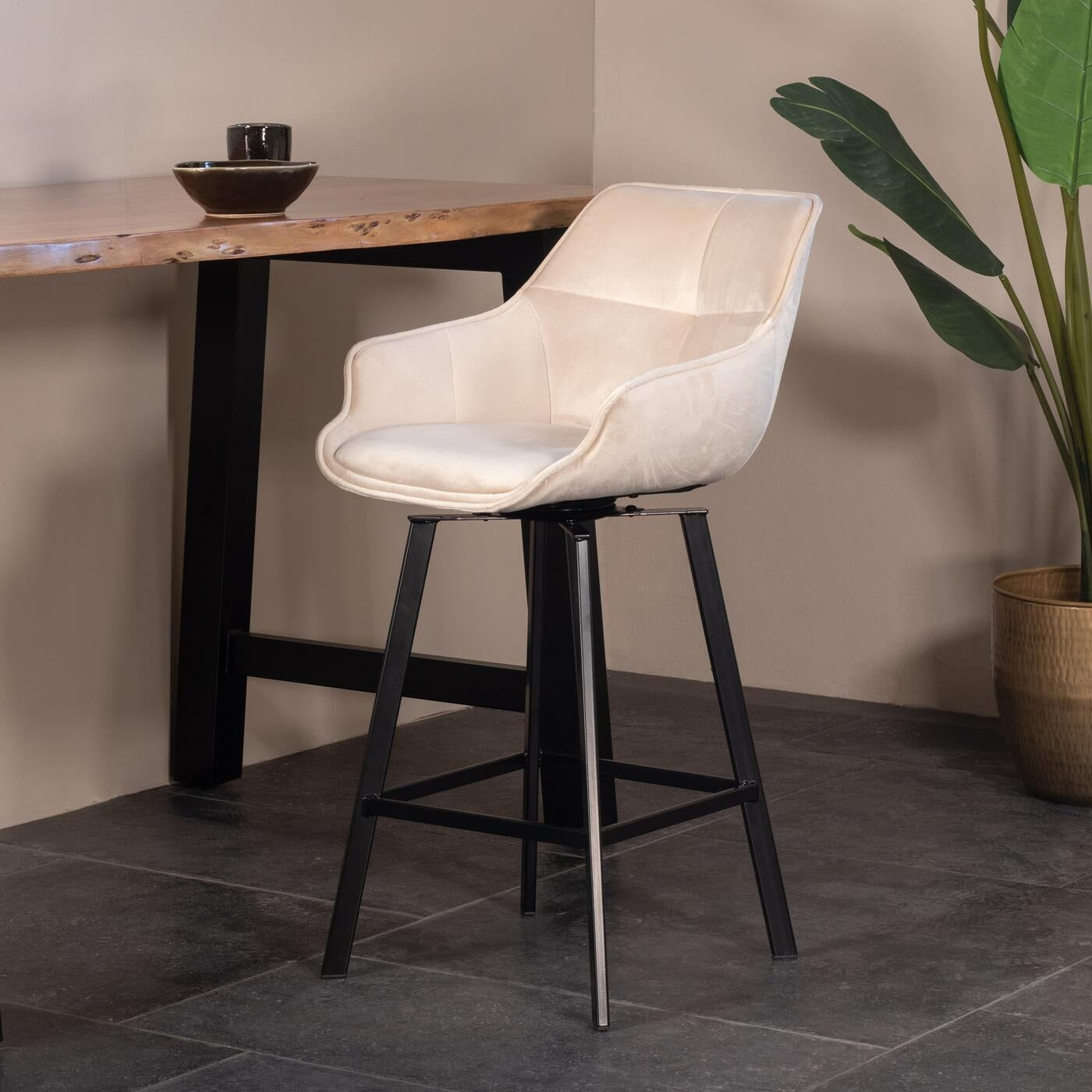 Ontdek de perfecte combinatie van urban chic en comfort met de Barstoel Shannon in een prachtige champagnekleur. Deze draaibare barstoel, vervaardigd uit een luxueuze mix van velvet en metaal, belooft niet alleen een stijlvolle toevoeging aan je interieur te zijn, maar ook een duurzame keuze. De zachte velvet zitting in champagne kleur, gecombineerd met het sterke metalen onderstel, maakt deze stoel tot een eyecatcher in elke ruimte. Ideaal voor zowel een modern als een klassiek interieur, biedt deze stoel het ultieme zitcomfort.