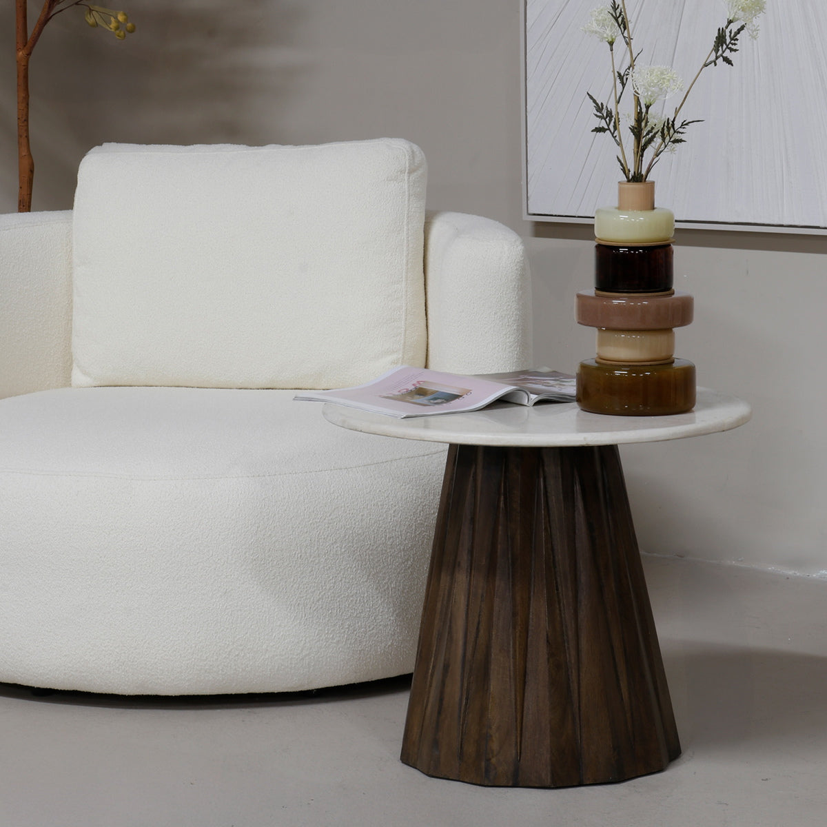 Bijzettafel Faiza Marmer Beige Rond 50cm - Giga Meubel