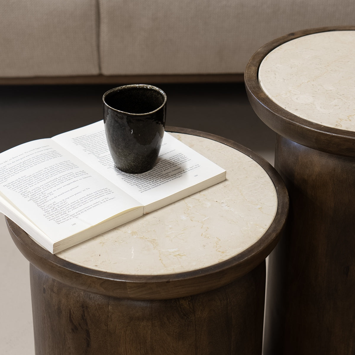 Giga Meubel - Bijzettafel Rond Ø34cm - Bruin Marmer - Kaja