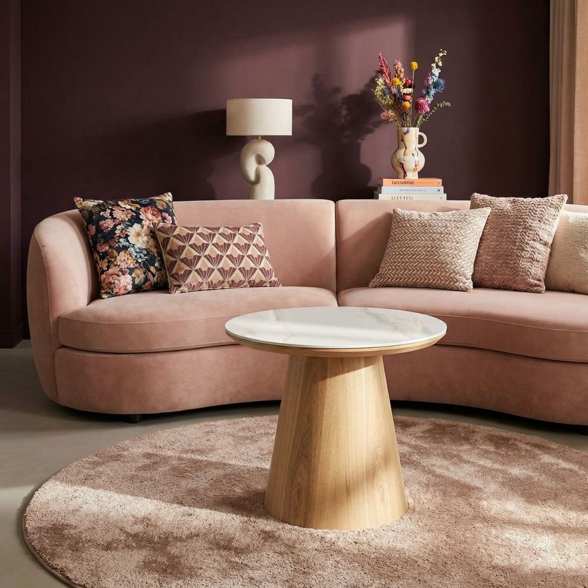 Bijzettafel Alba Naturel Keramisch 60cm Rond - Giga Meubel