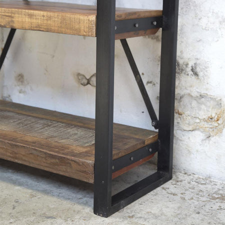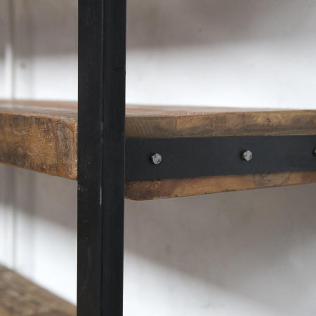 Materiaal: Deze boekenkast is vervaardigd uit een combinatie van hout, gerecycled botenhout en metaal, wat zorgt voor een stevige en duurzame constructie.