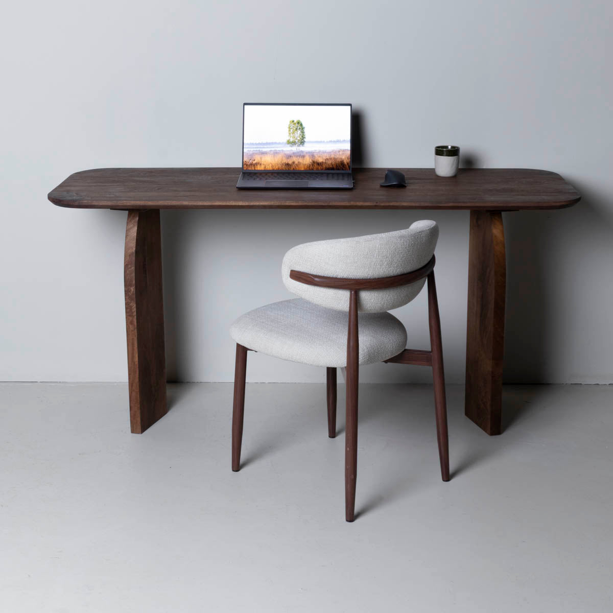 Ontdek het stijlvolle Bureau Dalarna, een prachtig meubelstuk dat perfect past in een Japandi interieur. Dit bureau is vervaardigd uit hoogwaardig mangohout en heeft een elegante donkerbruine kleur. Het is niet alleen een eyecatcher in je werkruimte, maar ook een functioneel meubelstuk dat je helpt om georganiseerd te blijven. De kwaliteit van het mangohout zorgt ervoor dat dit bureau duurzaam is en jarenlang meegaat. Het is ideaal voor dagelijks gebruik en biedt een comfortabele werkplek.