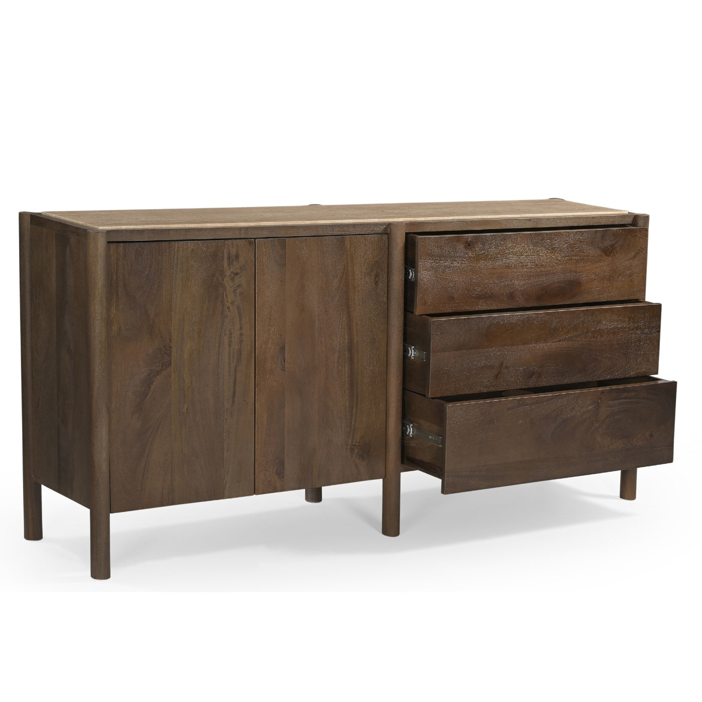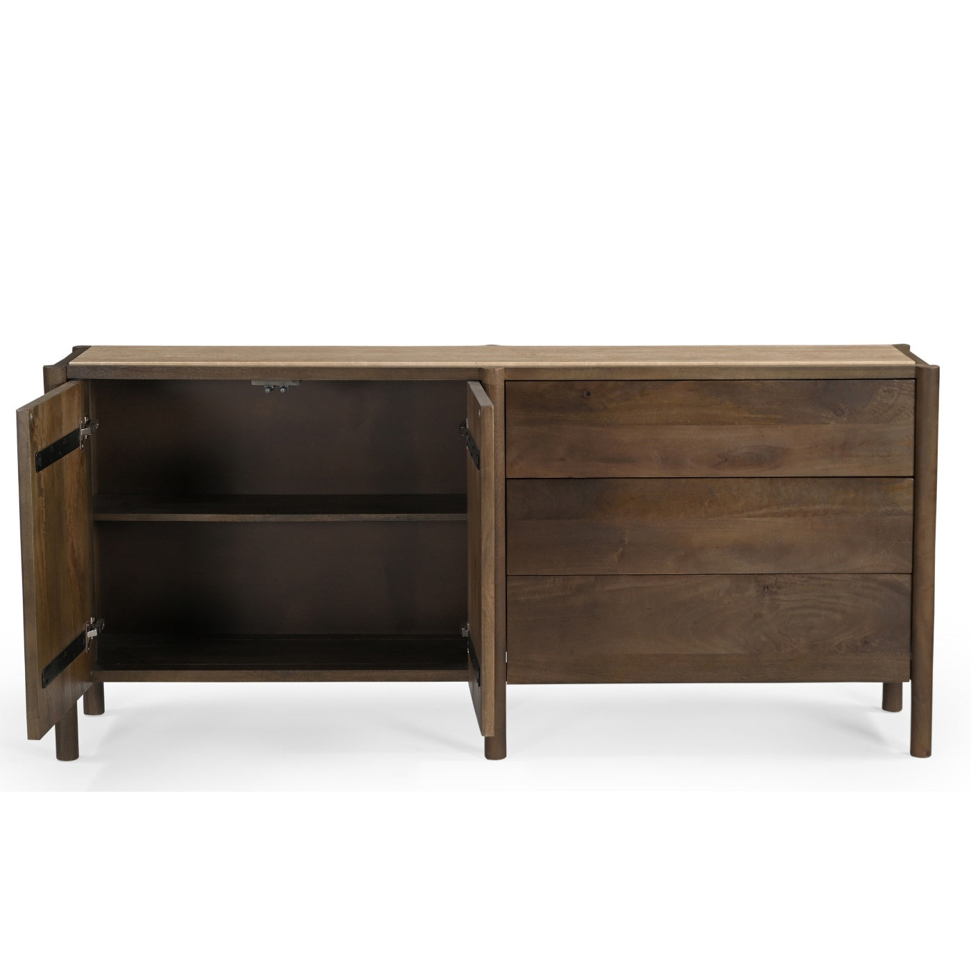 Materiaal: Het dressoir is gemaakt van mangohout en travertin, twee materialen die bekend staan om hun duurzaamheid en natuurlijke schoonheid. Deze combinatie zorgt voor een uniek en tijdloos meubelstuk.