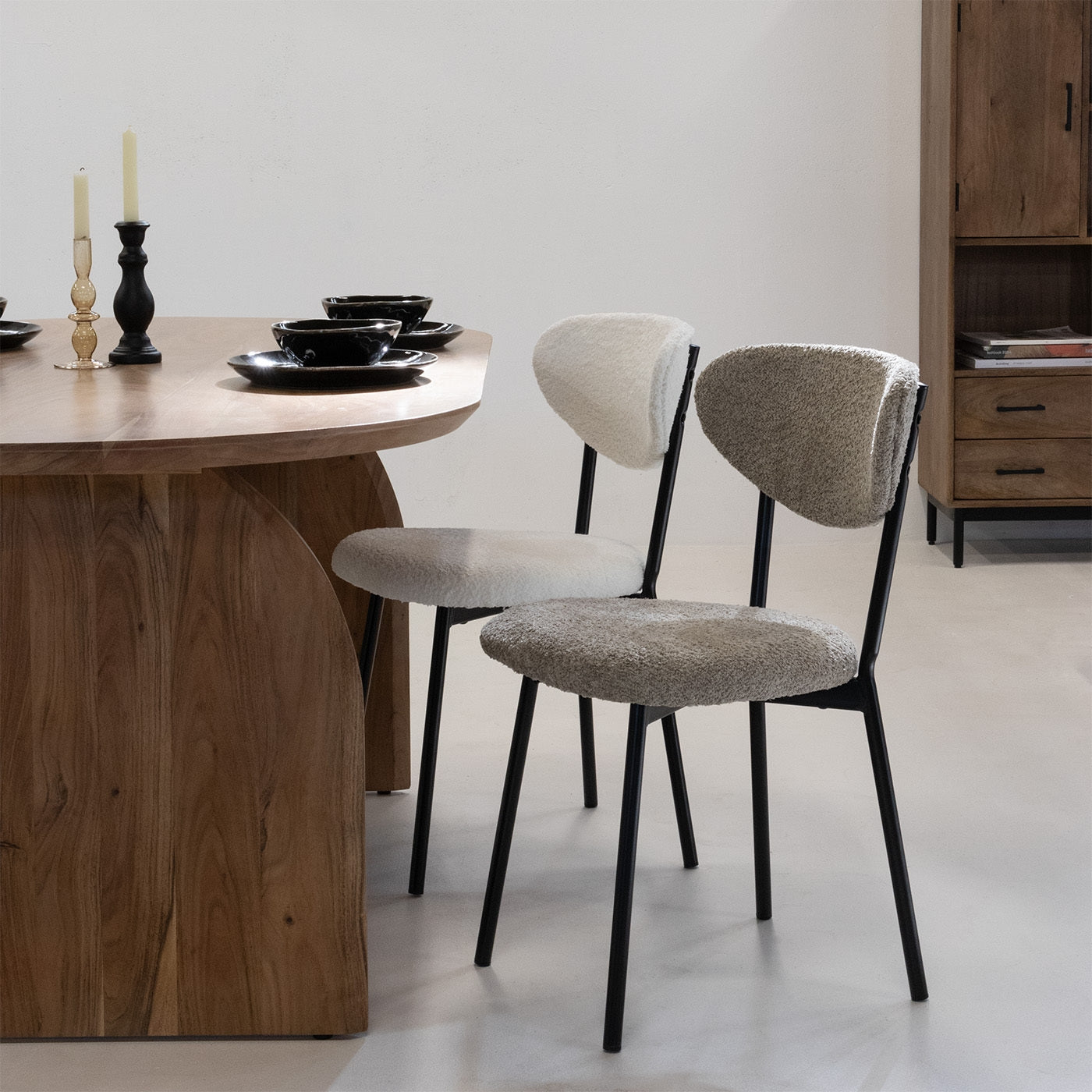 Eetkamerstoel Melanie Bouclé Taupe Set van 2 - Giga Meubel